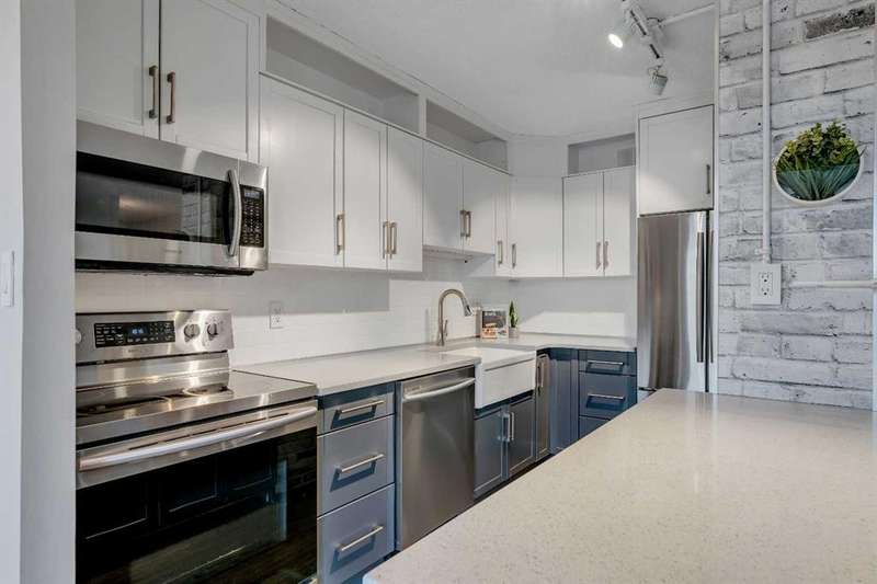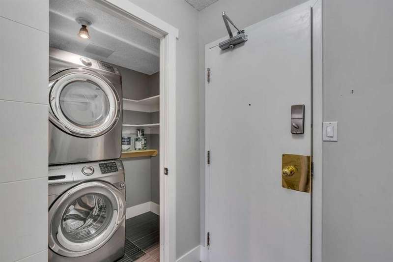 Welcome to this beautifully renovated one-bedroom, one-bathroom condominium in Calgary’s vibrant Beltline neighbourhood. Featuring laminate flooring throughout and a modern kitchen with sleek cabinetry and quartz countertops. Thanks to its desirable south exposure, the living space is flooded with natural light, while a cozy wood-burning fireplace adds charm and warmth. The spacious bedroom can easily accommodate a king-sized bed, work from home space and offers a generous walk-in closet. Living here means enjoying urban convenience with a secure parking stall and additional storage locker for all of your gear. Pet owners will love living across the street from the fenced Connaught off-leash park. The building provides desirable amenities, including bike storage and a cedar sauna, perfect for relaxing at the end of your day. With a walk score of 99, you’re mere steps away from trendy 17th Avenue, where you’ll have access to a diverse mix of cafes, restaurants, shops, and a Save-On Foods grocery store. Whether you are a first-time buyer, an investor, or looking to downsize, this move-in-ready condo offers a perfect blend of modern finishes, amenities, and inner-city living.