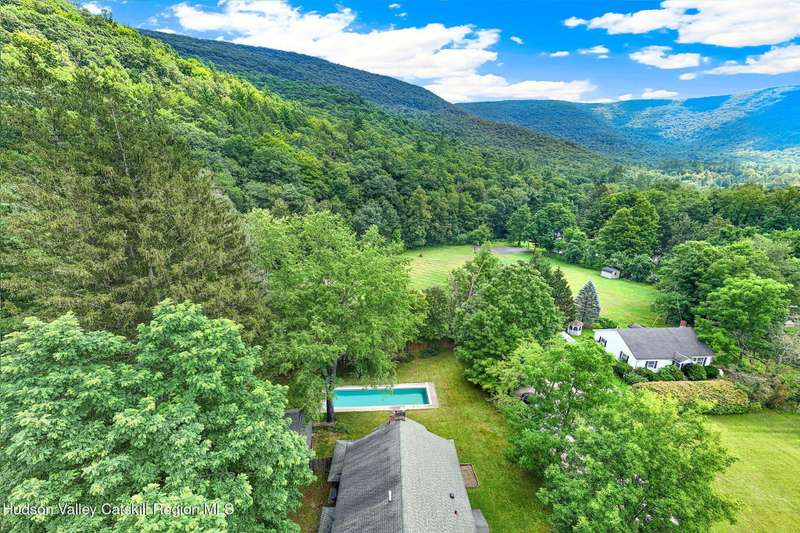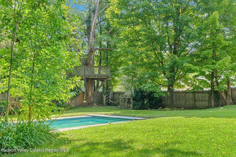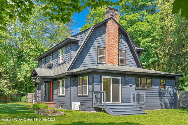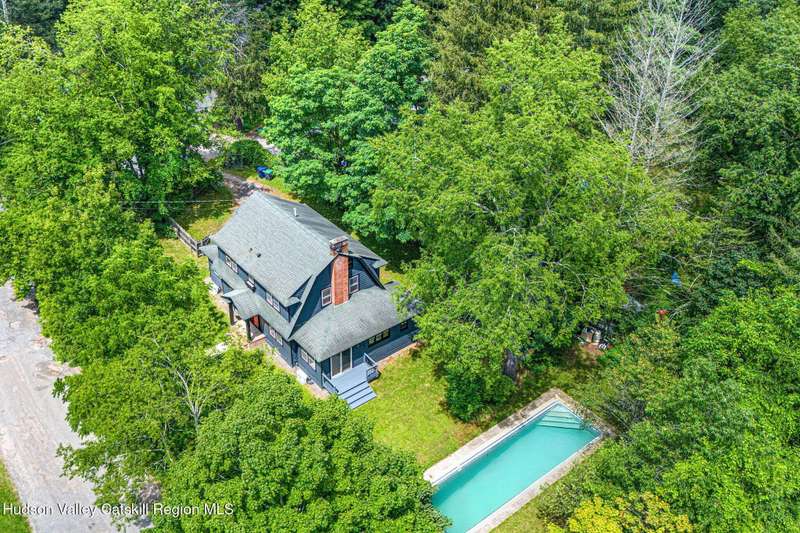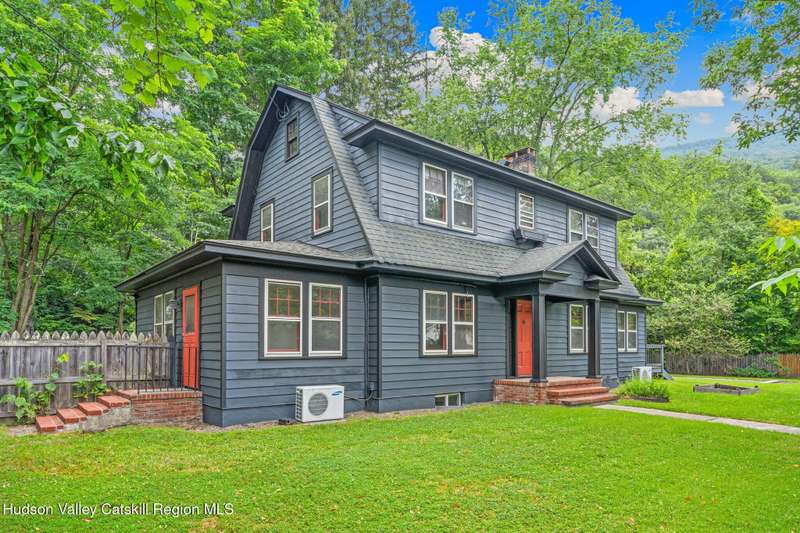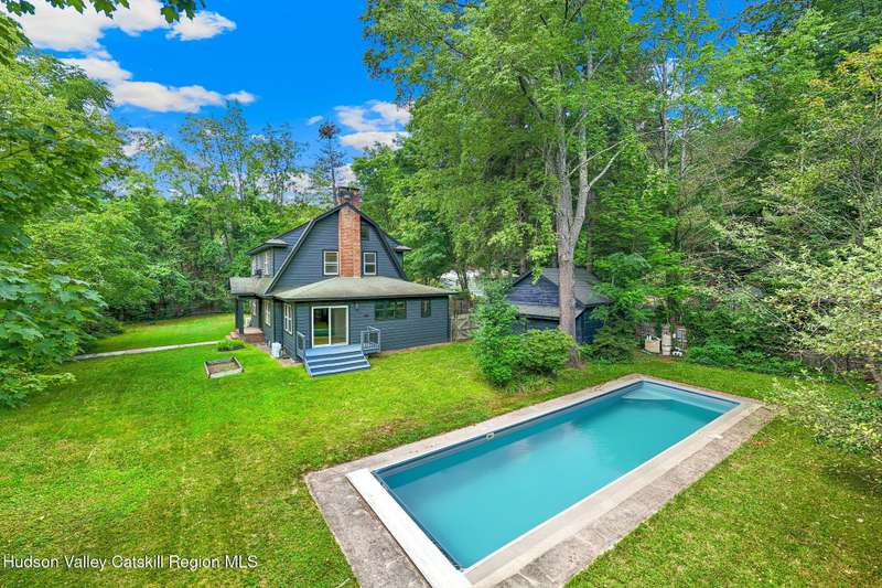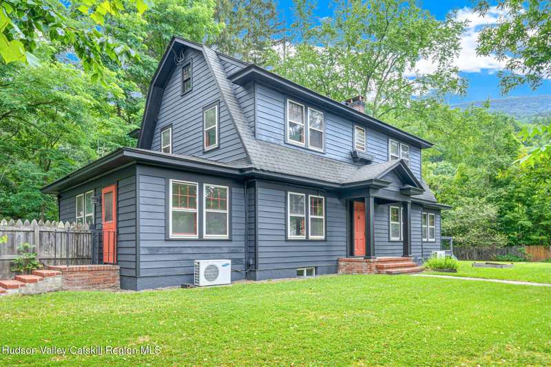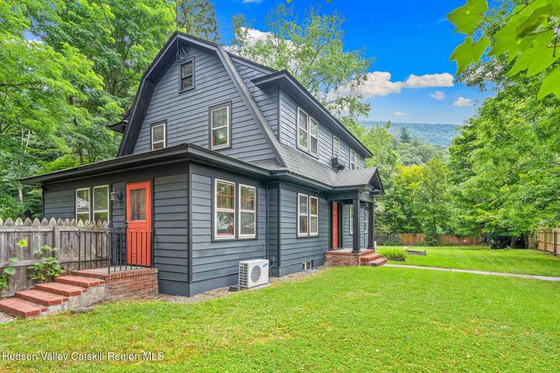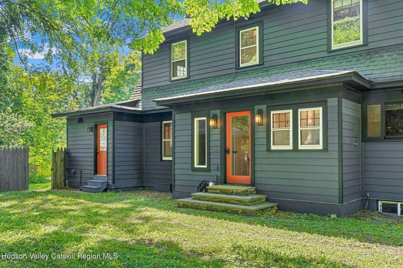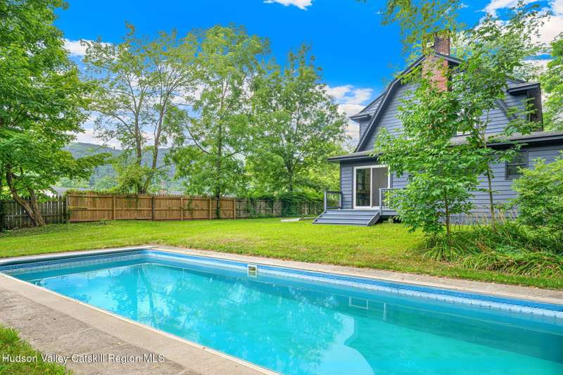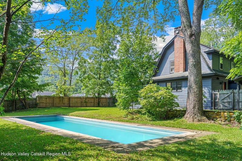 The best of both worlds. This unique 1934 colonial feels like you are in the country yet is in the center of Phoenicia. Enjoy lounging by your heated saline pool surrounded by mature peach, cherry, apple, and pear trees and perennial plantings with the privacy of a fully fenced in yard, then step outside and you are in the town park with access to a beautiful hiking trail where you can take in the Catskill Mountain Views. In the other direction you are within a minute's walk to the market, Brios and Battina's for wonderful cappuccino and brunch and across the street is the town's newly renovated library. The home is breaming with original details and charm combined with a very thoughtful designer renovation of the kitchen, downstairs bath and reconfiguration of the entrance and downstairs bedroom. Designer touches include two oversized built in couches which will convey with the home. The upstairs primary suite has a large walk-through closet and a gorgeous spa shower with rain head and heated floors. Luxury and craftsman details combined. There are two more bedrooms on the second level with a full bath and a staircase to a large attic complete with spray foam insulation. The main floor has a nice size bedroom with adjoining full bathroom as well as a home professional suite with its own entrance perfect for a therapist or a massage practice. There is an open concept living dining room with beautiful French doors and a magnificent new kitchen with breakfast bar and sliders going out to the pool. On the opposite side of the home is a large TV room with barn doors for privacy if needed. The full basement currently has a workout gym area and lots of storage. Come see this beautiful home that enjoys all that Phoenicia has to offer.