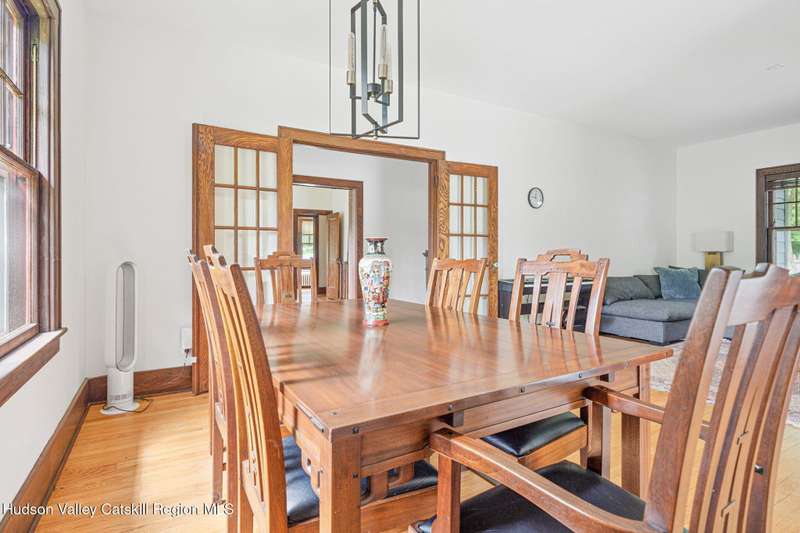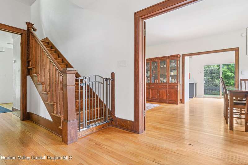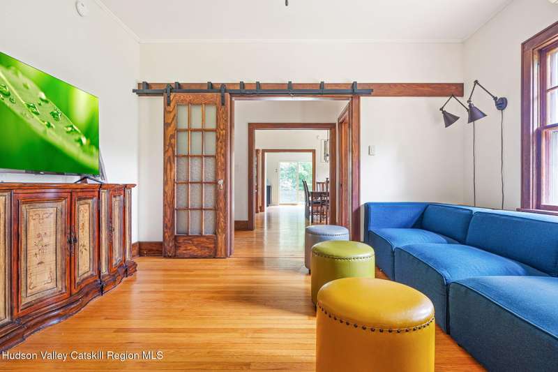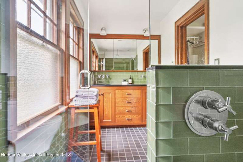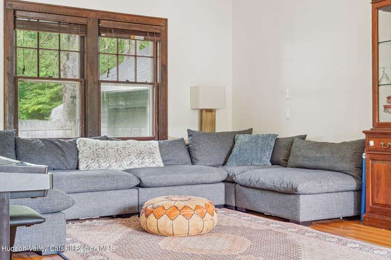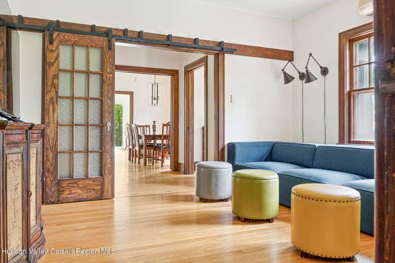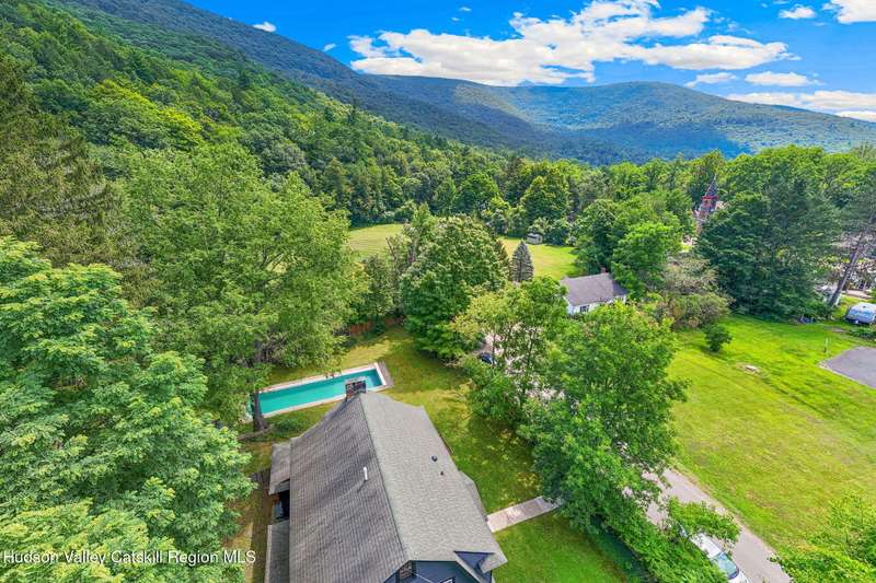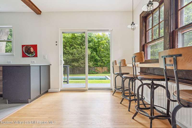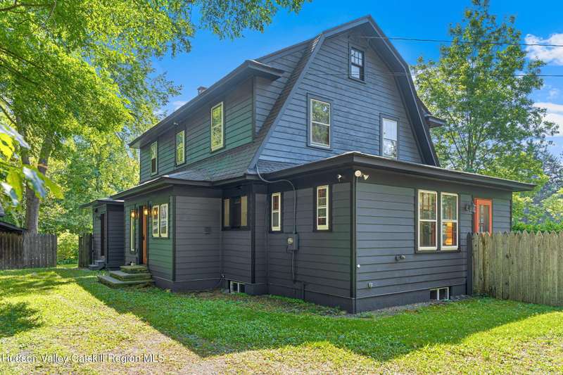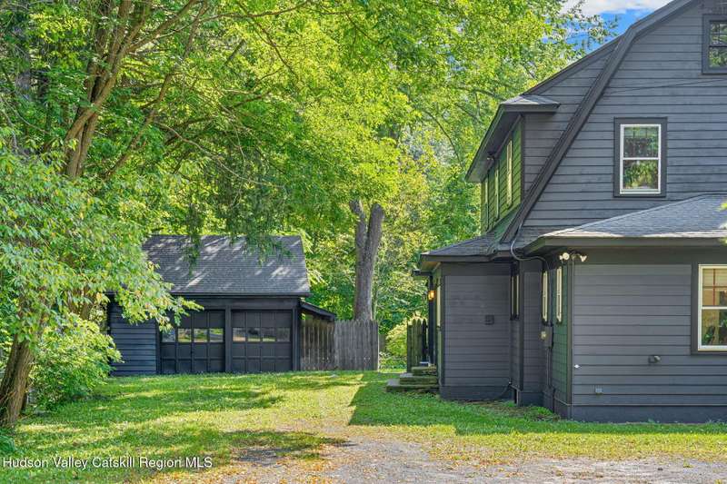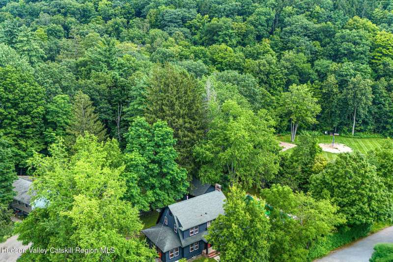 The best of both worlds. This unique 1934 colonial feels like you are in the country yet is in the center of Phoenicia. Enjoy lounging by your heated saline pool surrounded by mature peach, cherry, apple, and pear trees and perennial plantings with the privacy of a fully fenced in yard, then step outside and you are in the town park with access to a beautiful hiking trail where you can take in the Catskill Mountain Views. In the other direction you are within a minute's walk to the market, Brios and Battina's for wonderful cappuccino and brunch and across the street is the town's newly renovated library. The home is breaming with original details and charm combined with a very thoughtful designer renovation of the kitchen, downstairs bath and reconfiguration of the entrance and downstairs bedroom. Designer touches include two oversized built in couches which will convey with the home. The upstairs primary suite has a large walk-through closet and a gorgeous spa shower with rain head and heated floors. Luxury and craftsman details combined. There are two more bedrooms on the second level with a full bath and a staircase to a large attic complete with spray foam insulation. The main floor has a nice size bedroom with adjoining full bathroom as well as a home professional suite with its own entrance perfect for a therapist or a massage practice. There is an open concept living dining room with beautiful French doors and a magnificent new kitchen with breakfast bar and sliders going out to the pool. On the opposite side of the home is a large TV room with barn doors for privacy if needed. The full basement currently has a workout gym area and lots of storage. Come see this beautiful home that enjoys all that Phoenicia has to offer.