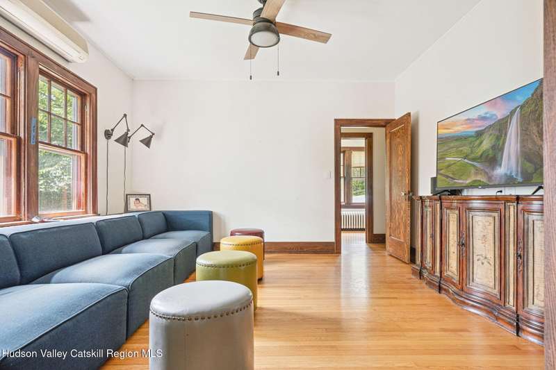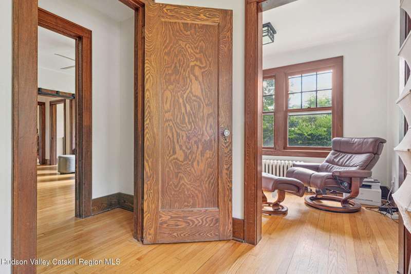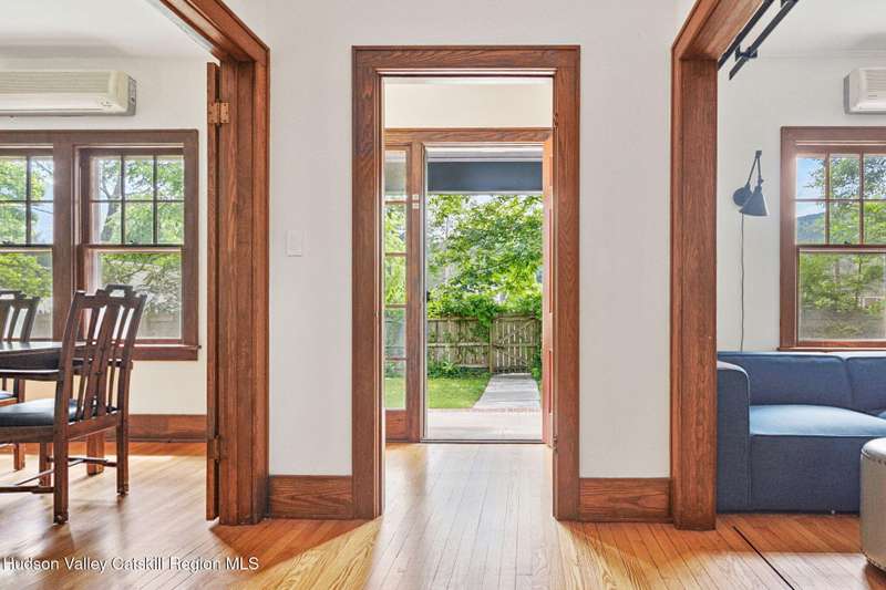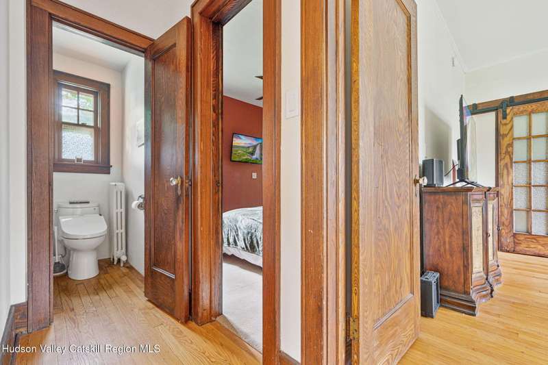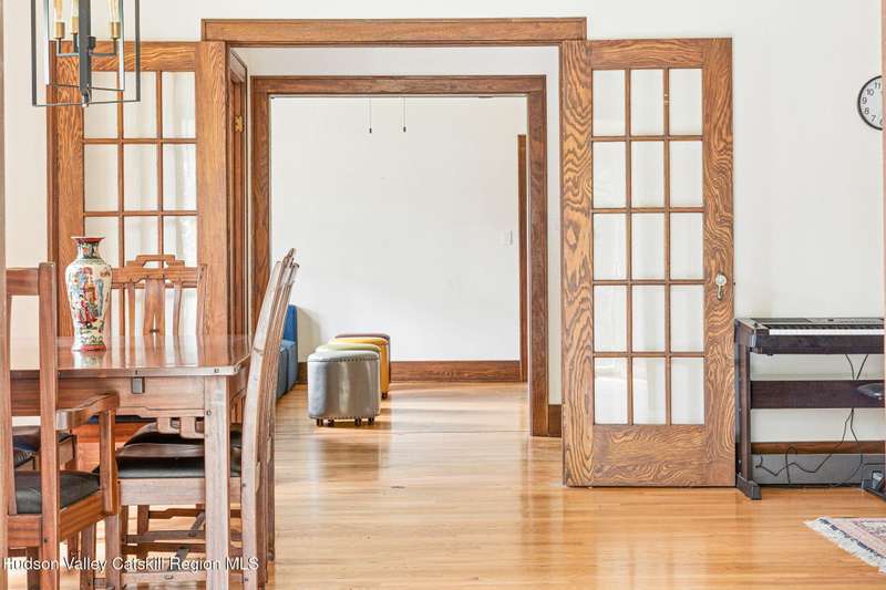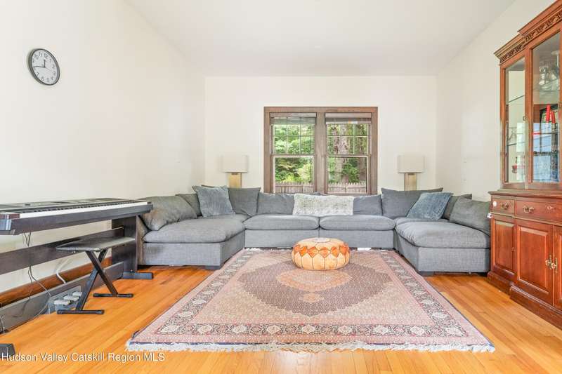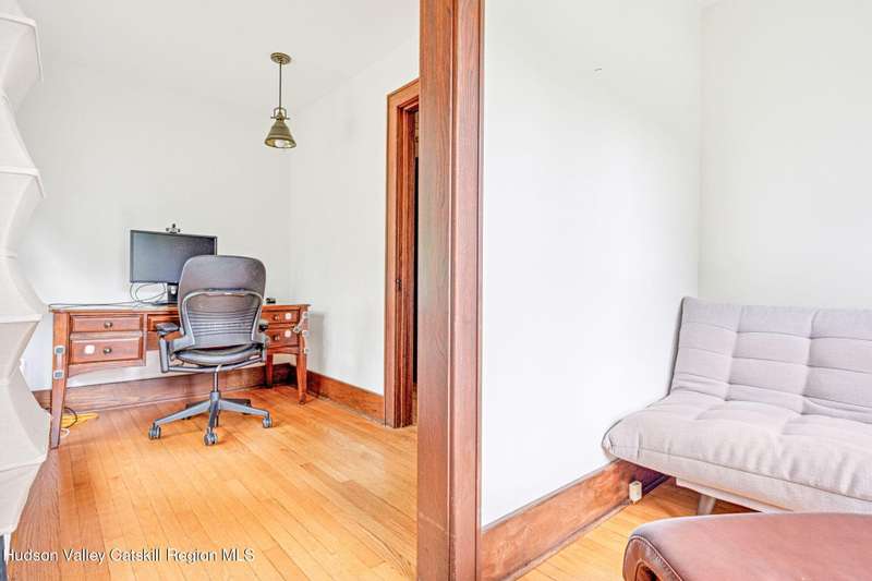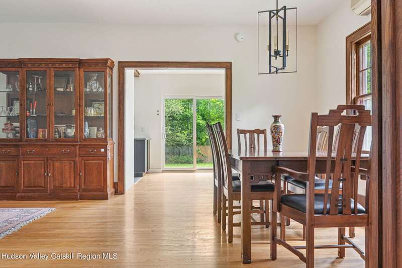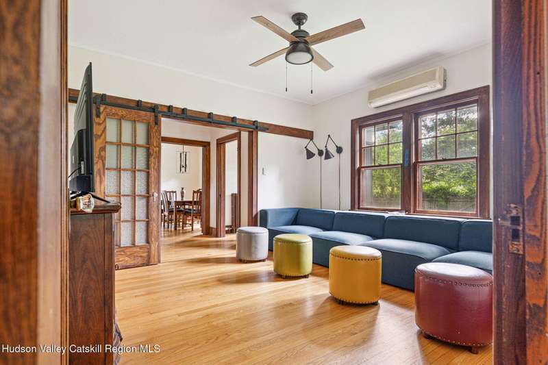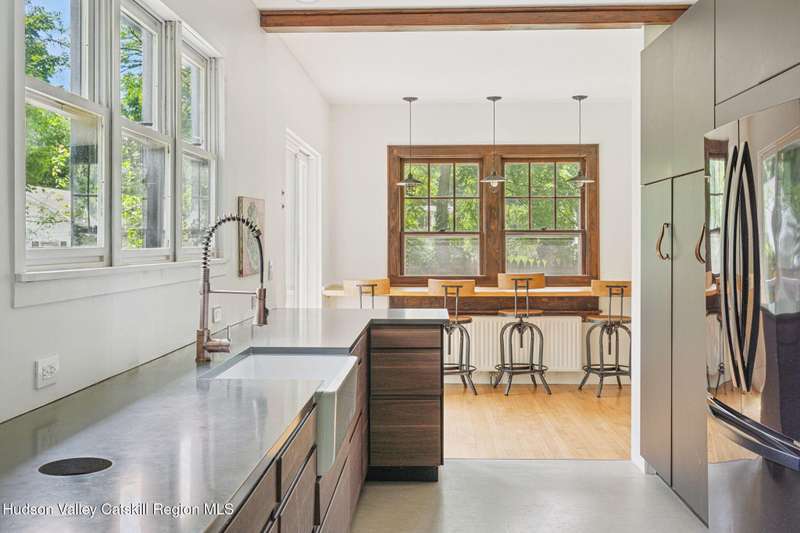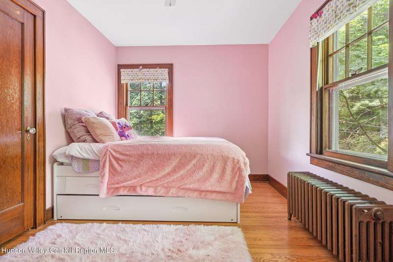 The best of both worlds. This unique 1934 colonial feels like you are in the country yet is in the center of Phoenicia. Enjoy lounging by your heated saline pool surrounded by mature peach, cherry, apple, and pear trees and perennial plantings with the privacy of a fully fenced in yard, then step outside and you are in the town park with access to a beautiful hiking trail where you can take in the Catskill Mountain Views. In the other direction you are within a minute's walk to the market, Brios and Battina's for wonderful cappuccino and brunch and across the street is the town's newly renovated library. The home is breaming with original details and charm combined with a very thoughtful designer renovation of the kitchen, downstairs bath and reconfiguration of the entrance and downstairs bedroom. Designer touches include two oversized built in couches which will convey with the home. The upstairs primary suite has a large walk-through closet and a gorgeous spa shower with rain head and heated floors. Luxury and craftsman details combined. There are two more bedrooms on the second level with a full bath and a staircase to a large attic complete with spray foam insulation. The main floor has a nice size bedroom with adjoining full bathroom as well as a home professional suite with its own entrance perfect for a therapist or a massage practice. There is an open concept living dining room with beautiful French doors and a magnificent new kitchen with breakfast bar and sliders going out to the pool. On the opposite side of the home is a large TV room with barn doors for privacy if needed. The full basement currently has a workout gym area and lots of storage. Come see this beautiful home that enjoys all that Phoenicia has to offer.