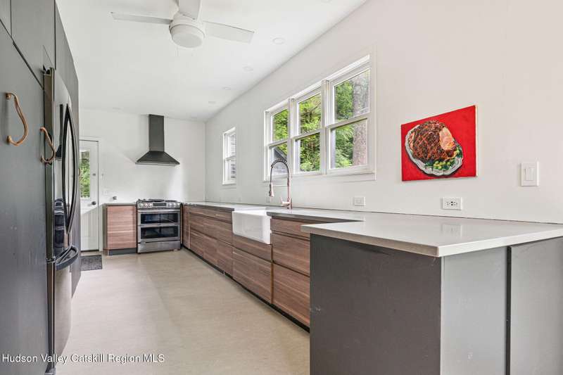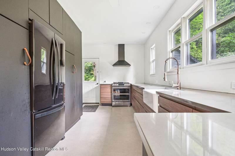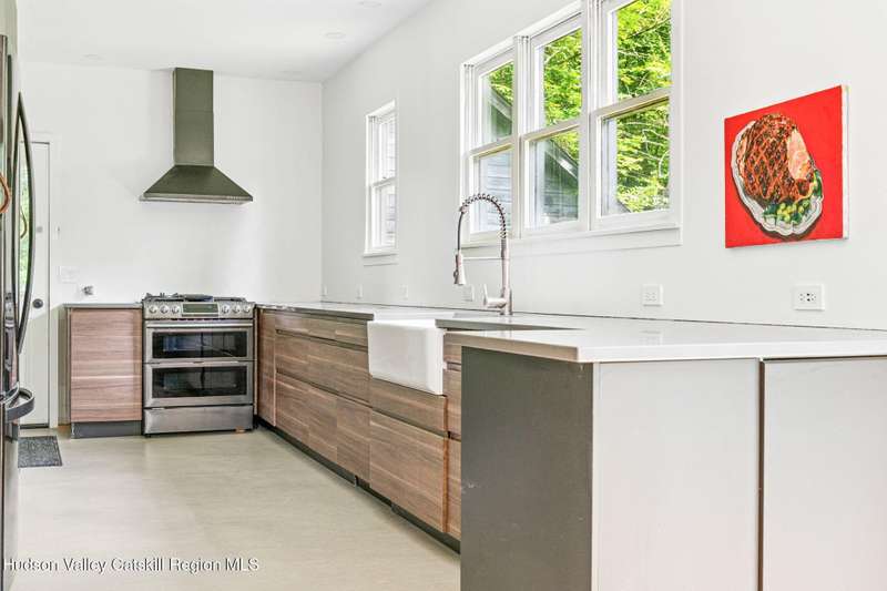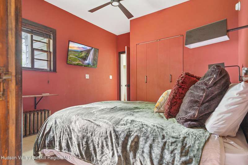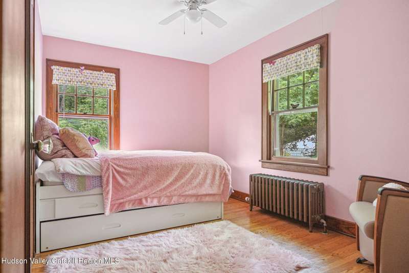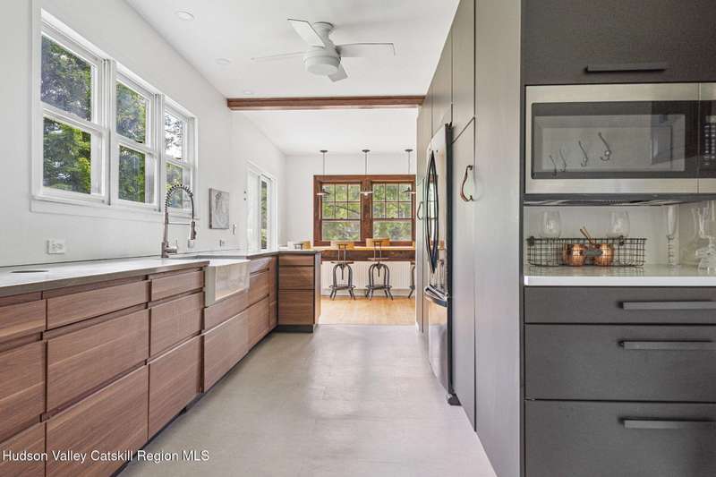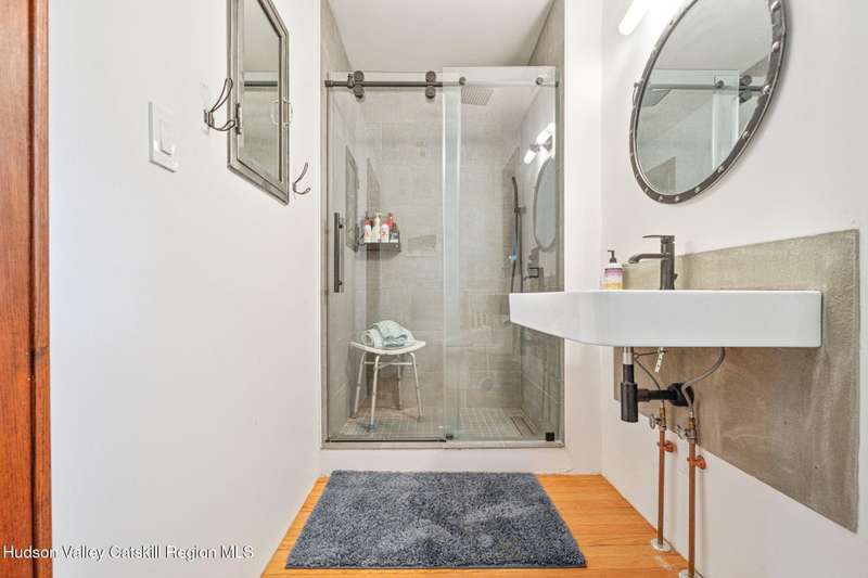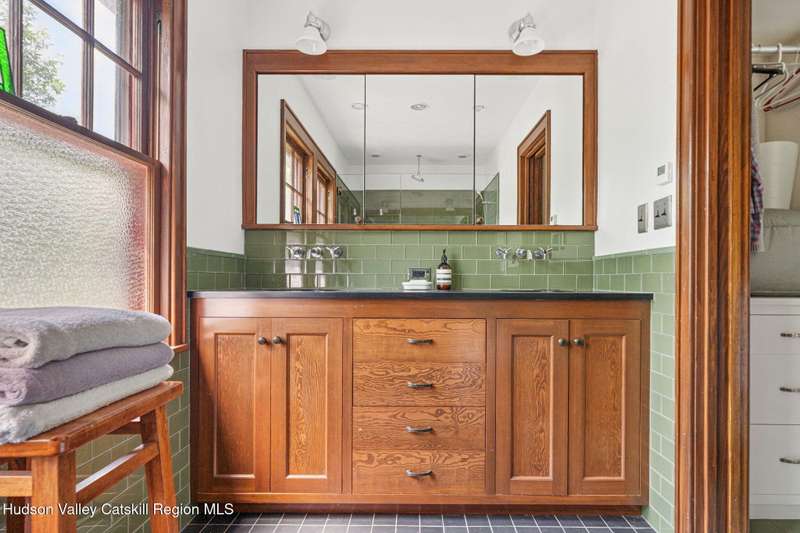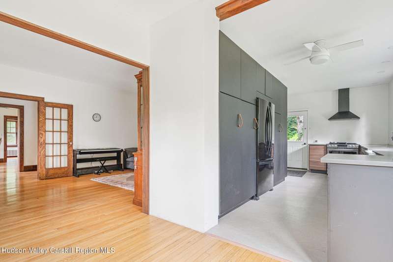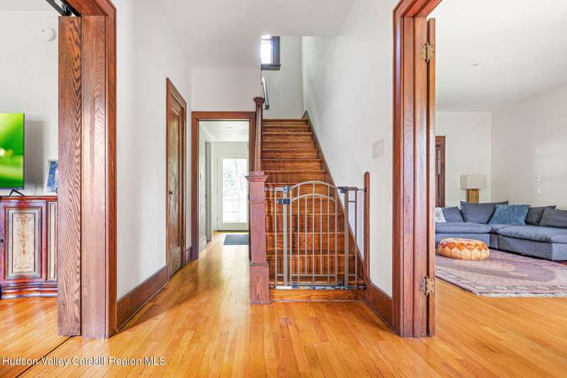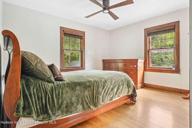 The best of both worlds. This unique 1934 colonial feels like you are in the country yet is in the center of Phoenicia. Enjoy lounging by your heated saline pool surrounded by mature peach, cherry, apple, and pear trees and perennial plantings with the privacy of a fully fenced in yard, then step outside and you are in the town park with access to a beautiful hiking trail where you can take in the Catskill Mountain Views. In the other direction you are within a minute's walk to the market, Brios and Battina's for wonderful cappuccino and brunch and across the street is the town's newly renovated library. The home is breaming with original details and charm combined with a very thoughtful designer renovation of the kitchen, downstairs bath and reconfiguration of the entrance and downstairs bedroom. Designer touches include two oversized built in couches which will convey with the home. The upstairs primary suite has a large walk-through closet and a gorgeous spa shower with rain head and heated floors. Luxury and craftsman details combined. There are two more bedrooms on the second level with a full bath and a staircase to a large attic complete with spray foam insulation. The main floor has a nice size bedroom with adjoining full bathroom as well as a home professional suite with its own entrance perfect for a therapist or a massage practice. There is an open concept living dining room with beautiful French doors and a magnificent new kitchen with breakfast bar and sliders going out to the pool. On the opposite side of the home is a large TV room with barn doors for privacy if needed. The full basement currently has a workout gym area and lots of storage. Come see this beautiful home that enjoys all that Phoenicia has to offer.