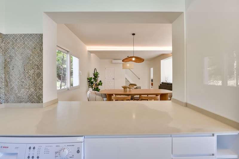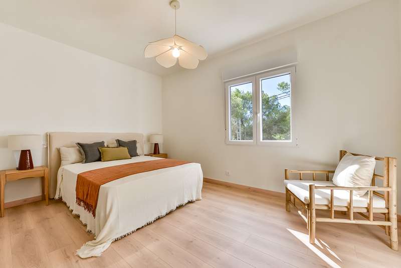The fully renovated villa offers 195 m² of built space (153 m² usable). It has 3 bedrooms, each with an en-suite bathroom, plus a guest toilet on the main floor. All rooms are equipped with air conditioning. The villa is sold unfurnished, allowing customization. Spacious living areas, modern bathrooms, and a fully fitted kitchen ensure comfort and practicality.