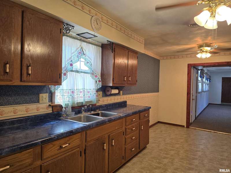 This 2BR/1BA ranch home sits on a slab. It is located on a large lot on dead end street on the S. end of town. An addition was added to the house in 2005. It included a dining room, family room, & additional room was added to the 1st bedroom which includes 2 closets. Roof was replaced on the house (not the garage) in 2024. A/C was installed in 2017 by Spoon River Mechanical. There is a storage area off of the garage. Large kitchen comes with appliances. The seller is the daughter & trustee & hasn't lived in the property. Would like to sell the property in "As Is" Condition but with an acceptable offer would offer a Home Warranty at closing. Seller doesn't know the age of the furnace or water heater.