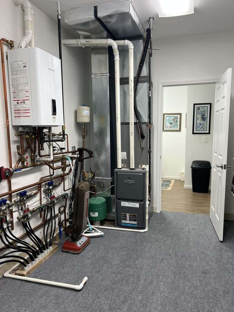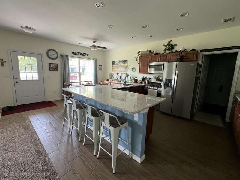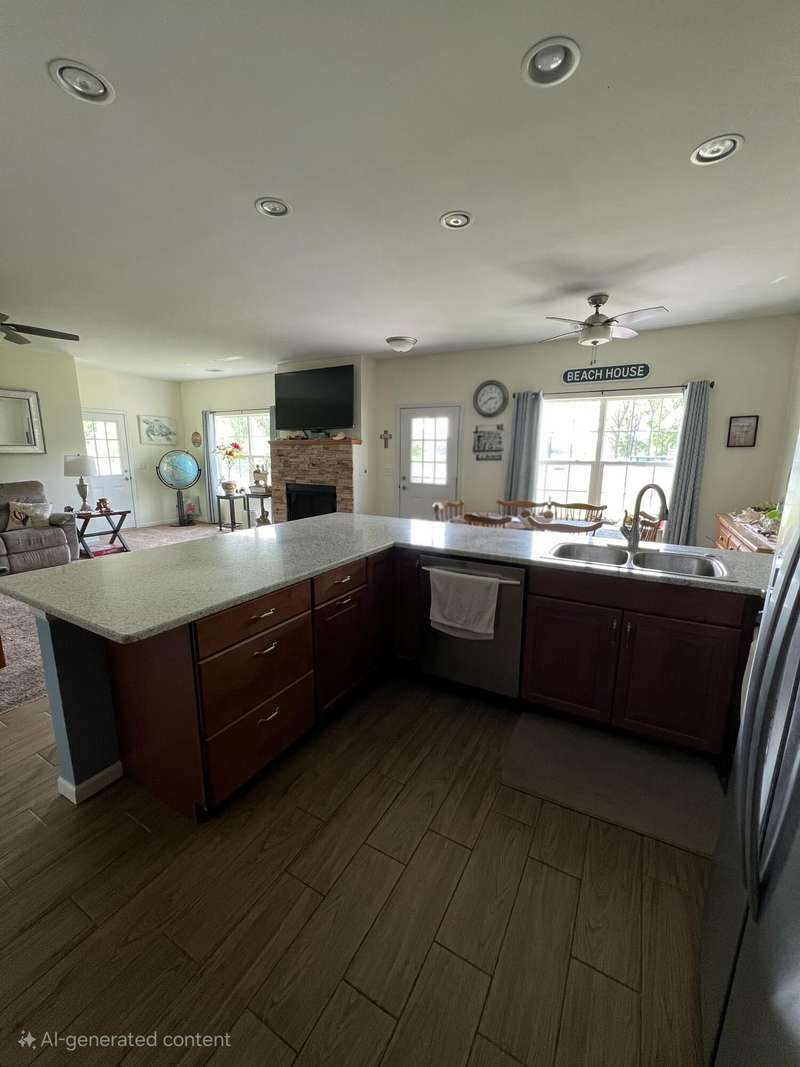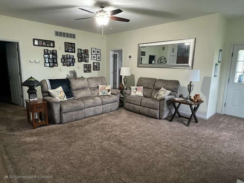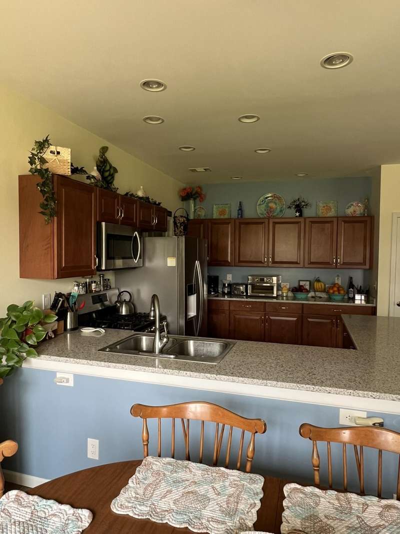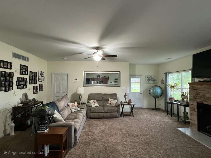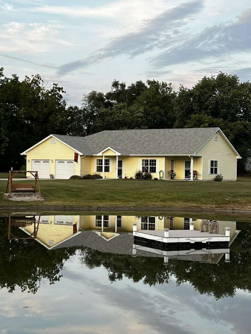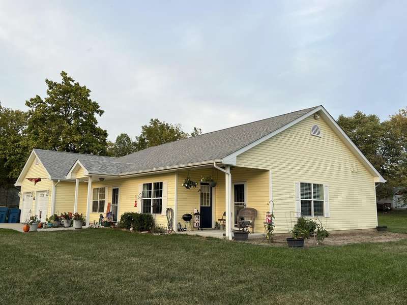 Welcome home to this nearly 1800 sq ft ranch style home, built in 2015, located in downtown Hebron. Nestled on almost half an acre, at the end of a quiet dead-end street, this home offers double the fun with 2 large bedroom, 2 baths, 2-8 x 8 covered patios w/ ceiling fans, open concept living with beautiful modern finishes, and an extended 2 1/2 car attached garage, previously used for related living. There is a secluded covered porch on front side of home perfect for enjoying pond views and stunning sunsets over the open field, perfect for coming home after a busy day and relaxing, or you can choose the other covered patio out back for a more private shaded area. Builder paid close attention to every detail when building this home starting with 2 x 6 construction, whole house and Garage floor heat, 9 ft. ceilings, quartz countertops and windowsills, an oversized quartz kitchen peninsula for entertaining, and tons of storage space. This home is landscaped beautifully with many flowering perennials blooming throughout the summer to enjoy. Don't miss this opportunity for easy, one-level living in a serene setting. May possibly work for handicap accessibility needs. Pond in picture is owned by Neighbor, no pond right. Schedule your showing today!