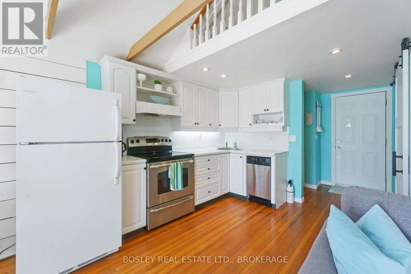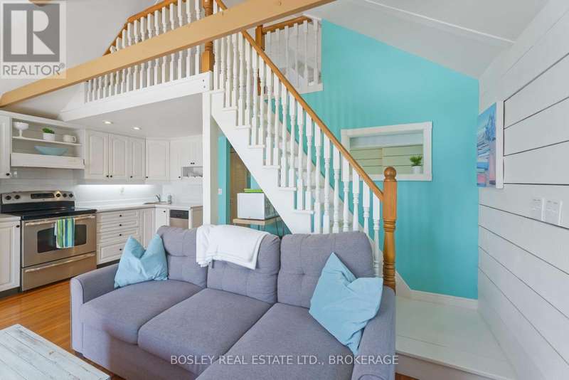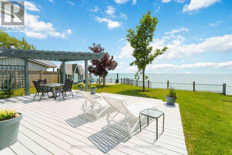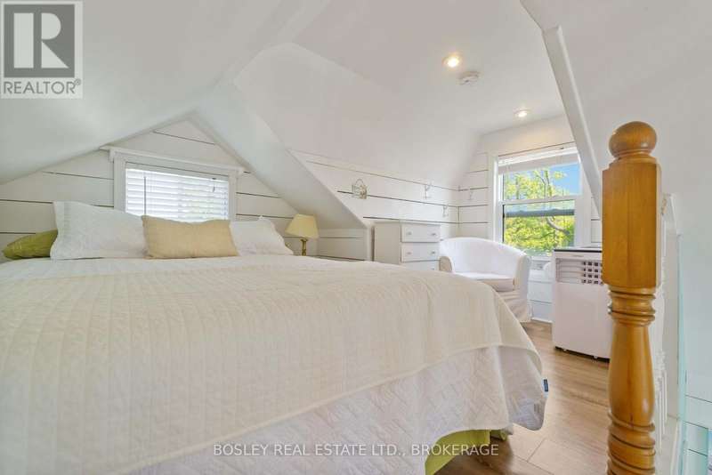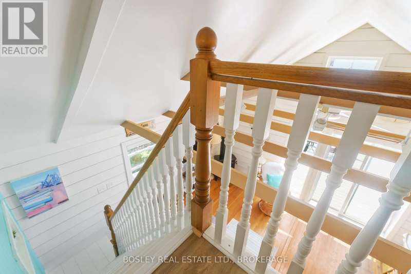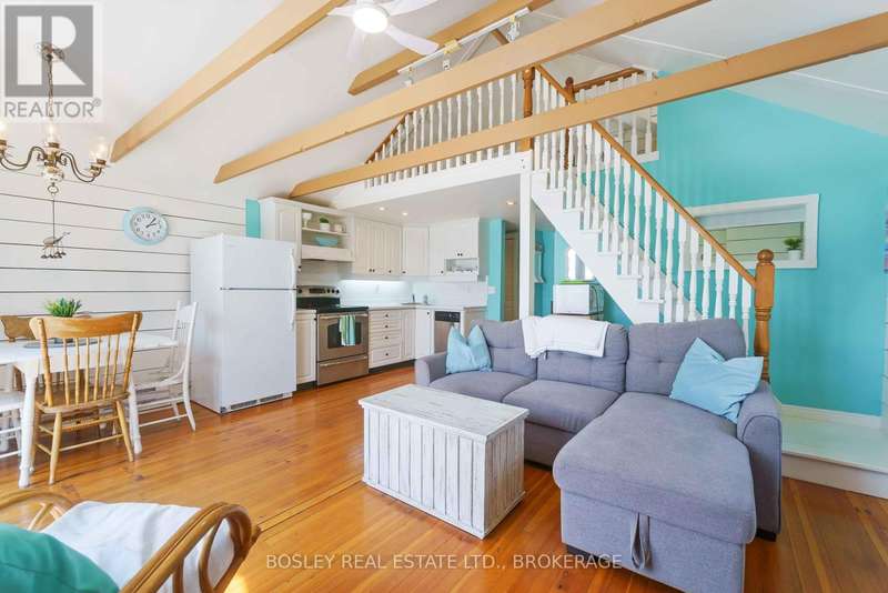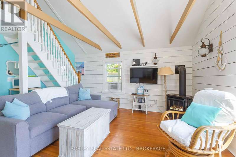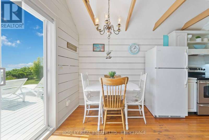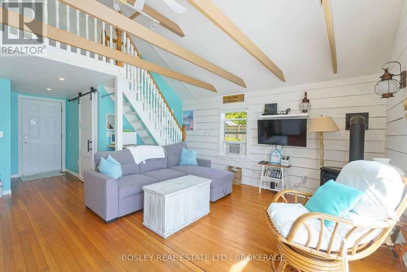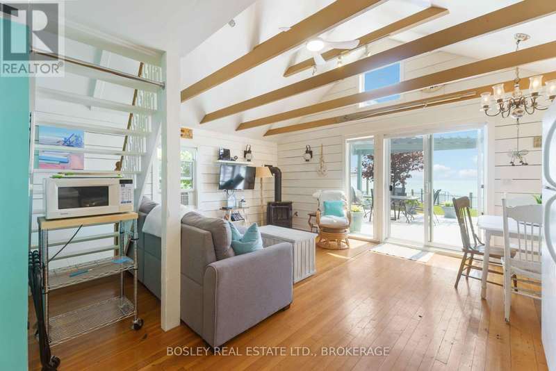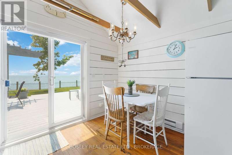 Enjoy the stunning views from this charming waterfront cottage on a quiet dead-end road near Dunnville. This cute and cozy cottage features a Nantucket style with a stylish personality. Inside, you'll be greeted by a panoramic view of Lake Erie, original wood floors, a fully equipped oak kitchen, and a gas fireplace that adds a nautical touch. The bright living area, with natural light and an open ceiling, feels spacious. Sliding glass doors open to a large south-facing deck and lawn, leading to the waters edge. The main floor has a bright bedroom, and the second bedroom upstairs includes a small sitting area. The cottage's Nantucket decor is simple yet beautiful, with every room offering a view of the lake. The 3-piece bathroom opens to an outdoor shower and hot tub deck, perfect for enjoying lake views or stargazing. In the evening, relax by the outdoor fireplace area at the water's edge. This cottage provides total comfort with a casual beach vibe. (id:7434)
