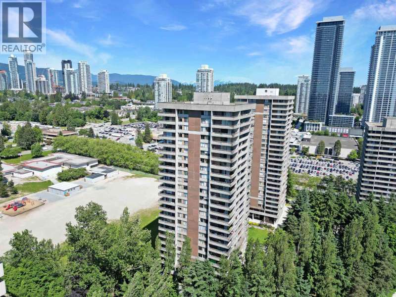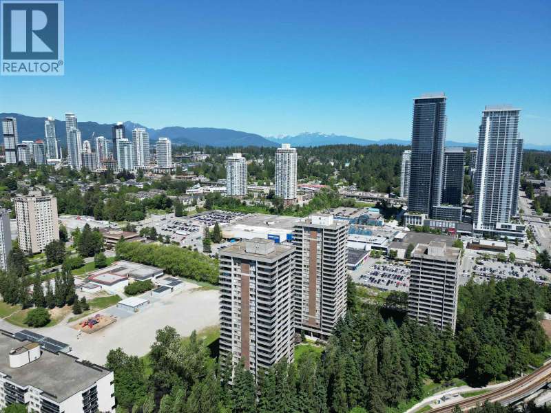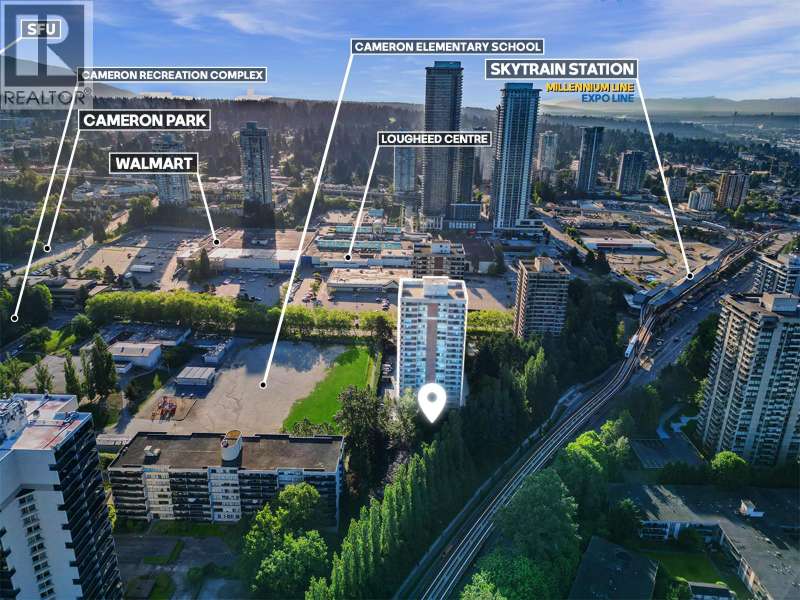 Enjoy panoramic city & mountain views from this spacious 1 bedroom corner suite at "The Maple"! Featuring updated laminate floors, modern kitchen with newer countertops, backsplash & microwave, plus a bright open living/dining area. Relax on your 200+ sqft wraparound balcony with sunset views. The large bedroom offers excellent closet space. Maintenance fee includes heat, hot water & electricity-no hydro/gas bills! Amenities: indoor pool, gym, rec room, workshop & upgraded shared laundry. 1 parking & 1 storage locker included. Steps to Lougheed Skytrain, the City of Lougheed Mall (90+ shops, restaurants & services), Cameron Rec Centre & quick access to SFU, Hwy 1 & Lougheed Hwy. Rentals & pets allowed! (id:58403)