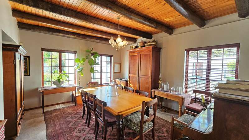 JOINT MANDATE: This extraordinary home combines character, space, and versatility in one of Robertson?ÇÖs most desirable locations. The main home features multiple living areas, a versatile loft, and ample doors that open to various outdoor spaces?Çöperfect for enjoying every season. It offers four bedrooms, two bathrooms, and a stylish modern kitchen with a separate scullery. A cozy fireplace in the living area sets the tone for winter evenings, while the outdoor braai area under the vines provides the ideal summer gathering spot. Adding to its appeal is a freestanding cottage with its own entrance, offering a living area with fireplace, bedroom, kitchenette area, bathroom, and a large adaptable loft?Çöideal for tenants, family, or a home office. Additional features include three garages, irrigation, solar panels with an inverter, Fibre internet, air-conditioning, and a lei water storage tank. The beautiful garden is anchored by a magnificent oak tree, while mountain views and the adjacent vineyard frame unforgettable sunsets?Çömaking this family friendly neighborhood especially sought after. This unique property is more than a house; it?ÇÖs a home, ready to welcome new owners to create lasting memories.