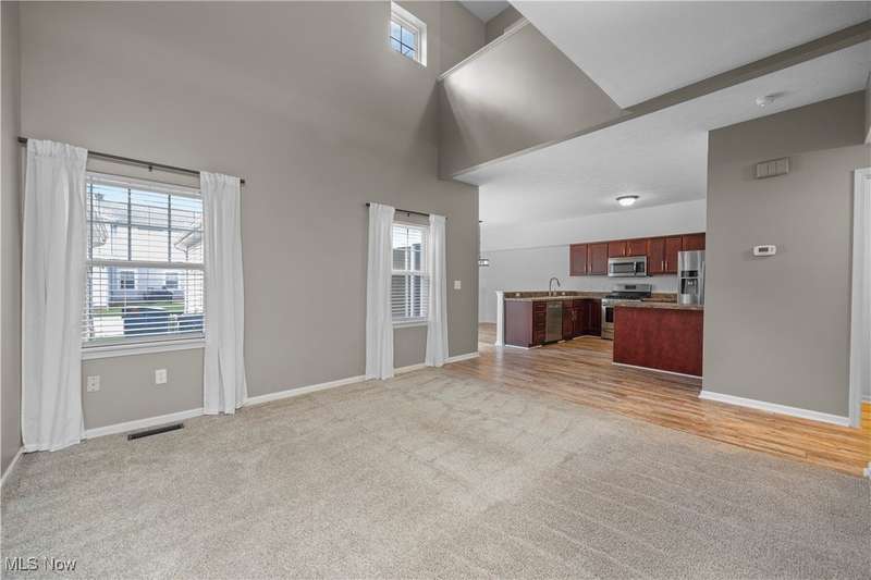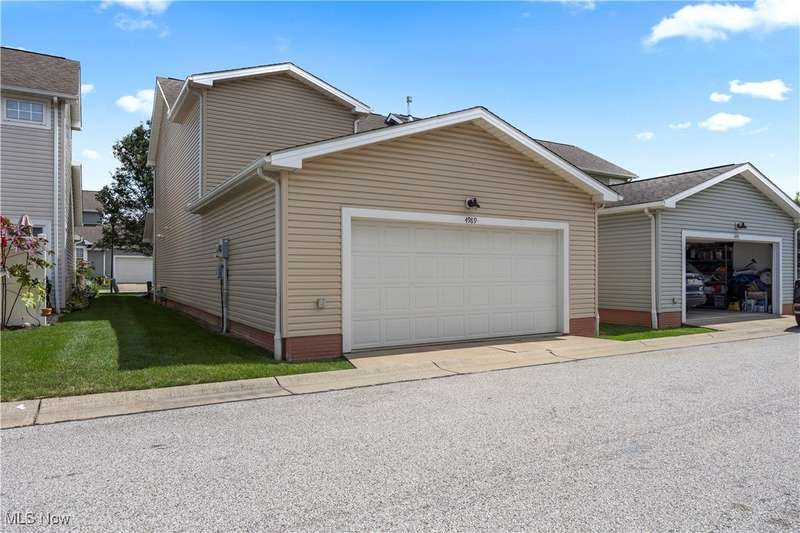 Welcome to 4989 Greenflower St in North Olmsted! This move-in ready townhome condo offers low-maintenance living with 2 bedrooms, 2.5 baths, and a spacious, functional layout. The main level features a bright entryway with coat closet, an oversized great room with soaring two-story ceiling, a nicely designed kitchen with all appliances included, dining area with patio access, half bath, laundry room/utility room with washer and dryer. Upstairs you'll find a versatile loft, the owner's suite with private bath, a second bedroom, and another full bath. Enjoy outdoor space on the front porch or private patio, plus a 2-car garage equipped with 220 service and a heater that stays. Association fees cover exterior maintenance, landscaping, mowing, edging, and snow removal, making daily life simple and convenient. Updates include vinyl plank flooring on the main level (2017), carpet upstairs and in the great room (2020), updated half bath (2020), storm door (2022), new blinds upstairs (2024), washer and dryer (2022), and dishwasher (2024). For added peace of mind, the seller is including a one-year home warranty through CINCH. Conveniently located near highways, the turnpike, shopping, dining, metro parks, and just 20 minutes to downtown Cleveland. Don't miss this opportunity for comfort and convenience in a prime location!