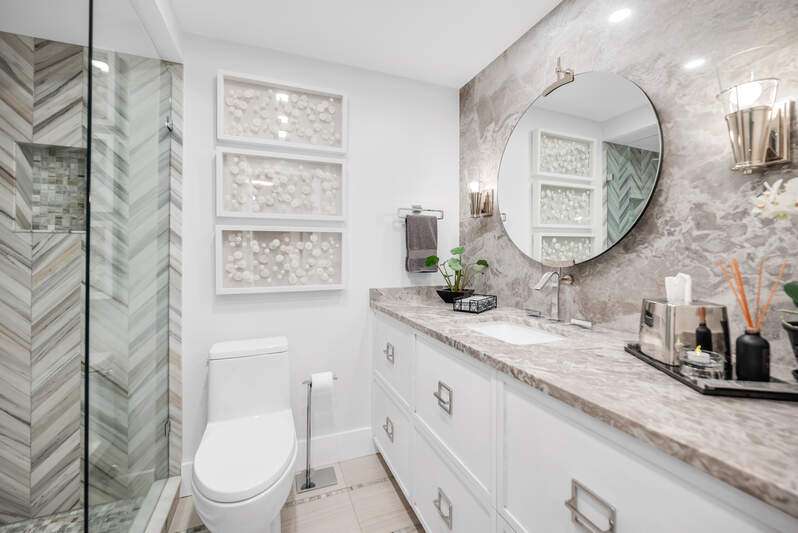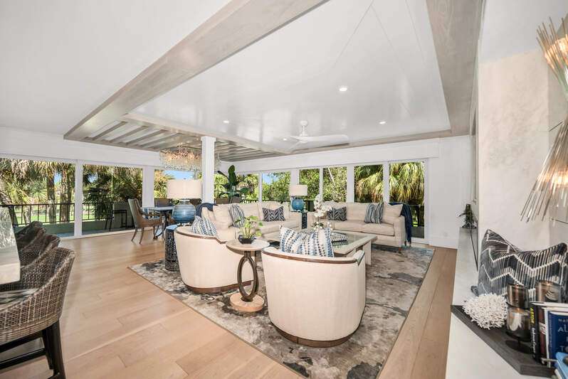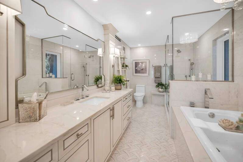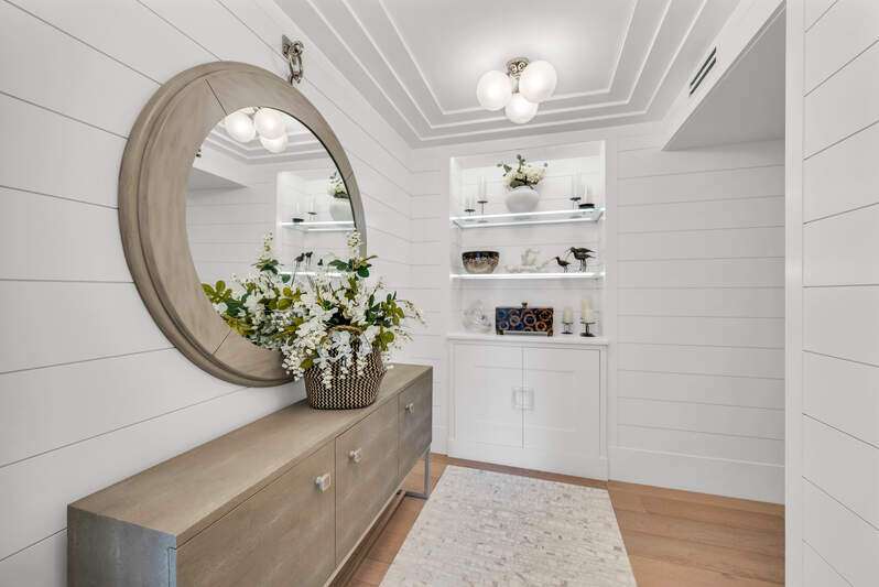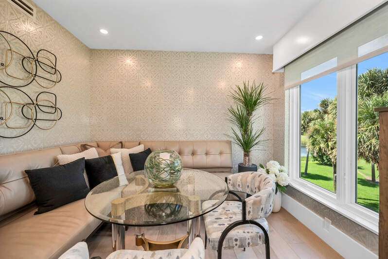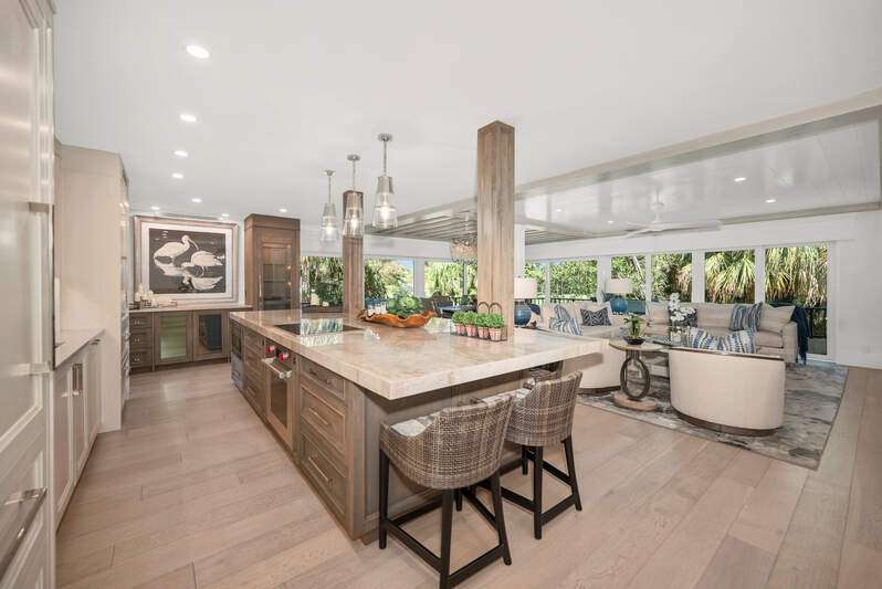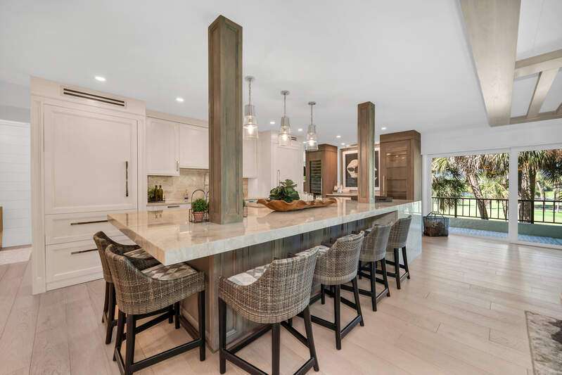 Absolutely Stunning! This top-floor, furnished three-bedroom residence with a wide balcony in an elevator building has been completely reimagined with a tailored renovation that elevates every detail. Wide-plank French oak flooring sets the stage for a bright, modern interior. The chef's kitchen boasts quartz countertops with a dramatic waterfall edge, a butler's pantry with double ovens and a warming tray, and exquisite tile inlays. Multiple built-in wine coolers, climate-controlled wine storage, and beverage fridges make entertaining effortless. The open living area showcases an elegant marble entertainment wall with an electric fireplace, custom shiplap accents, and floor-to-ceiling impact-rated sliders framing sweeping views. A cozy breakfast cove with leather seating and power shades offers the perfect place to relax. Every detail has been thoughtfully designed, from custom closets and a built-in desk to designer light fixtures and intricate tilework throughout. Spa-like bathrooms feature seamless glass shower doors, herringbone tile, and luxurious finishes, while the primary suite includes both a soaking tub and a walk-in shower. Refined finishes in every room create a true private oasis that embodies modern elegance. Additional highlights include a fantastic golf cart with a lithium-ion battery and a dedicated golf cart storage area with custom cabinetry. Residents have exclusive access to the newly constructed state-of-the-art 5-star Clubhouse and practice facility, making this property a golfer's paradise. A golf cart and dedicated cart garage are included, conveniently located next to your assigned covered parking. Set within a stunning 200-acre gated community, you'll enjoy beautifully landscaped grounds and mature trees lining the roads. This community offers unlimited golf on an 18-hole Arthur Hills course, as well as five inviting pools, four tennis courts, bocce, croquet, and a dog park. This condo is a true gem, just minutes from the vibrant shopping and dining of 5th Avenue and Old Naples. Purchase of a Wilderness Country Club membership is required and immediately available, offering you an effortless transition into this luxurious lifestyle.