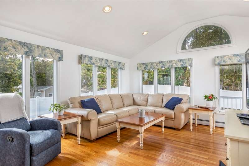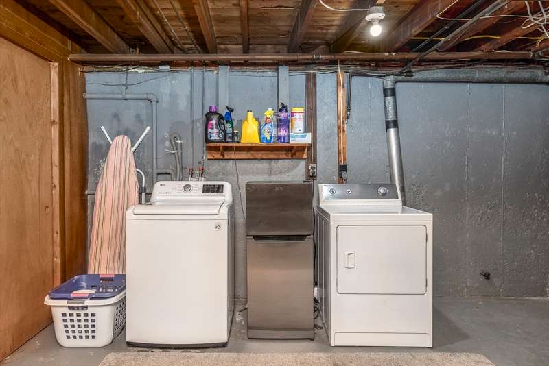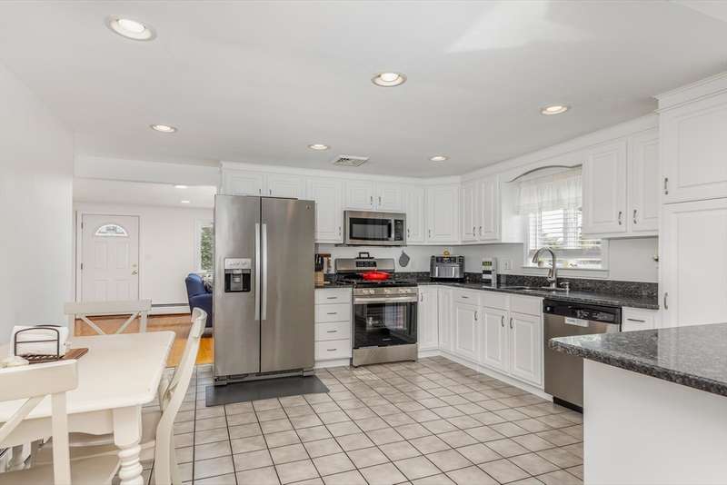 Pristine and move-in ready, this 3-bedroom, 2-bath home offers the perfect blend of comfort, style and space. A formal living room with a wood burning fireplace provides a warm and inviting setting for entertaining. The kitchen, with a designated dining area as well as counter space for a quick meal, opens to a sun-filled family room with a cathedral ceiling and an abundance of windows that help create a bright and airy gathering space. A renovated bathroom, with shower stall, is tucked away. The lower level is partially finished, with additional space that's ready to be customized to your needs. Enjoy outdoor living in the fenced yard or entertain family and friends on your composite deck. Conveniently located near shopping, schools, and commuter routes, this is the home you've been waiting for!