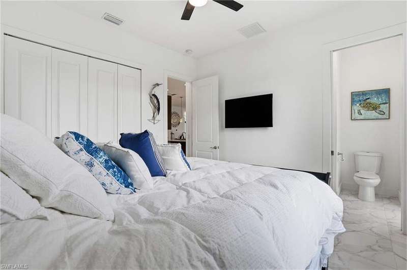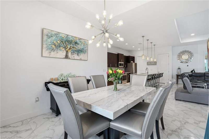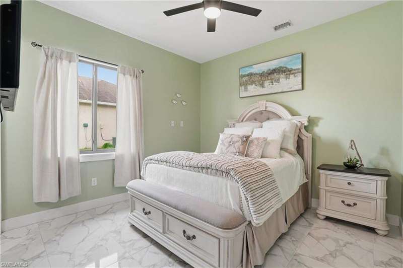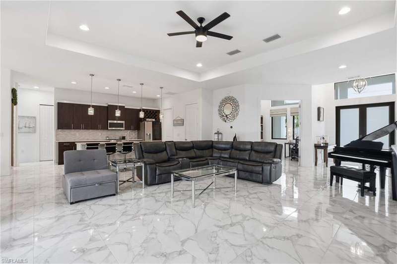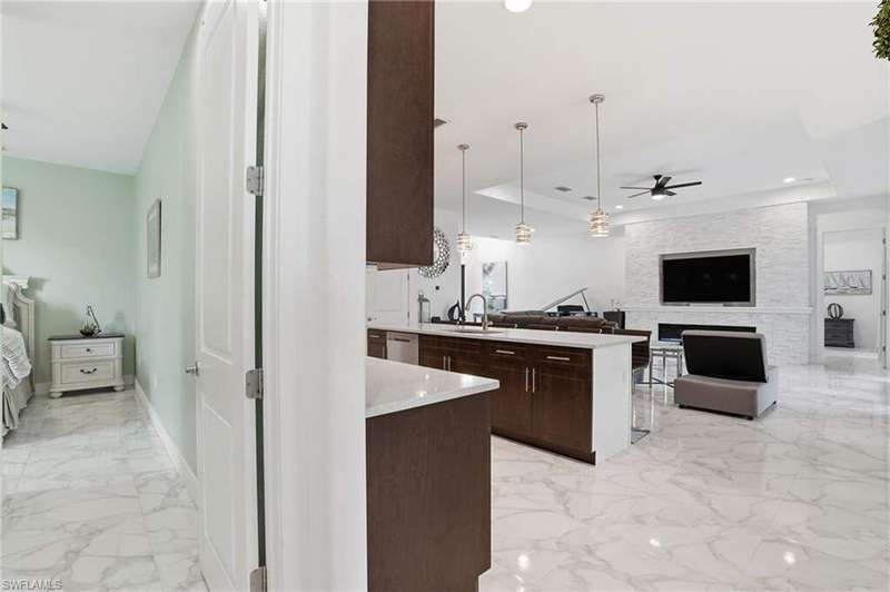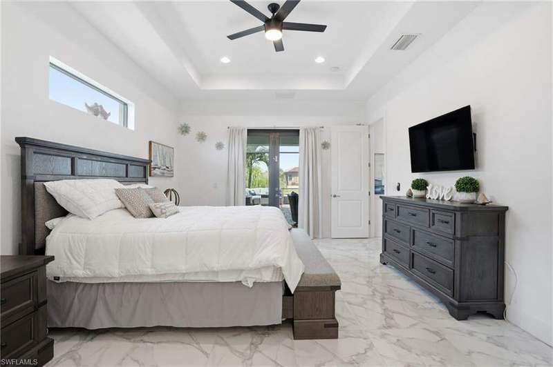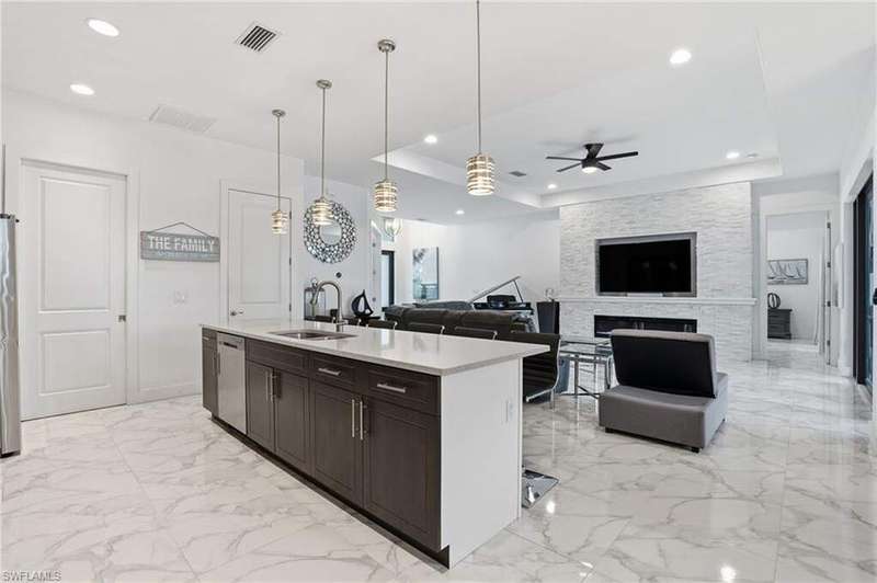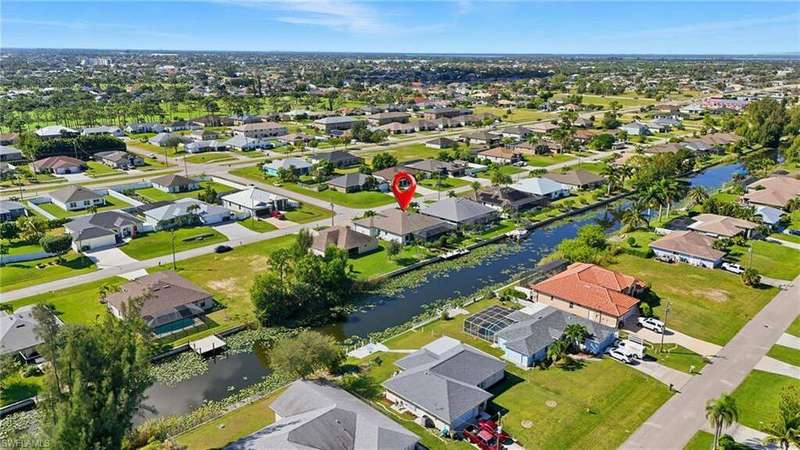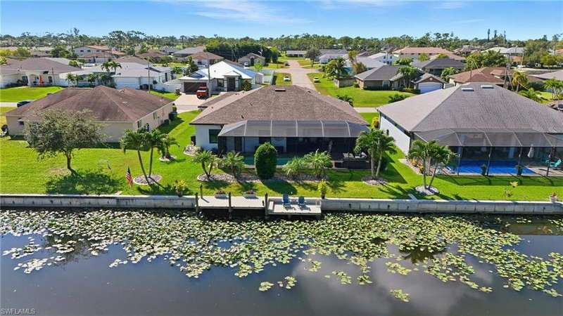 Meticulously maintained NEVER FLOODED canal-front POOL home offering 4 spacious bedrooms and 3 full bathrooms being sold TURNKEY in a prime Cape Coral location. Designed for comfort and style, this property showcases high-end finishes and a thoughtful layout, perfect for Florida living. Step inside to find oversized porcelain tile throughout, tray ceilings, and a custom stone fireplace that adds warmth and character to the living space. The kitchen features Corian countertops and a breakfast bar that opens to the main living area, making it perfect for entertaining. Step outside to your private backyard oasis with a saltwater pool and a fully equipped outdoor kitchen, ideal for relaxing or hosting gatherings. The spacious primary suite includes an en suite bath with separated dual vanities, a soaking tub, and a walk-in shower. Three additional bedrooms offer comfort and privacy for family or guests. Located on a peaceful canal, this home combines elegant design, functional space, and the laid-back Cape Coral lifestyle. Don't miss this exceptional opportunity!