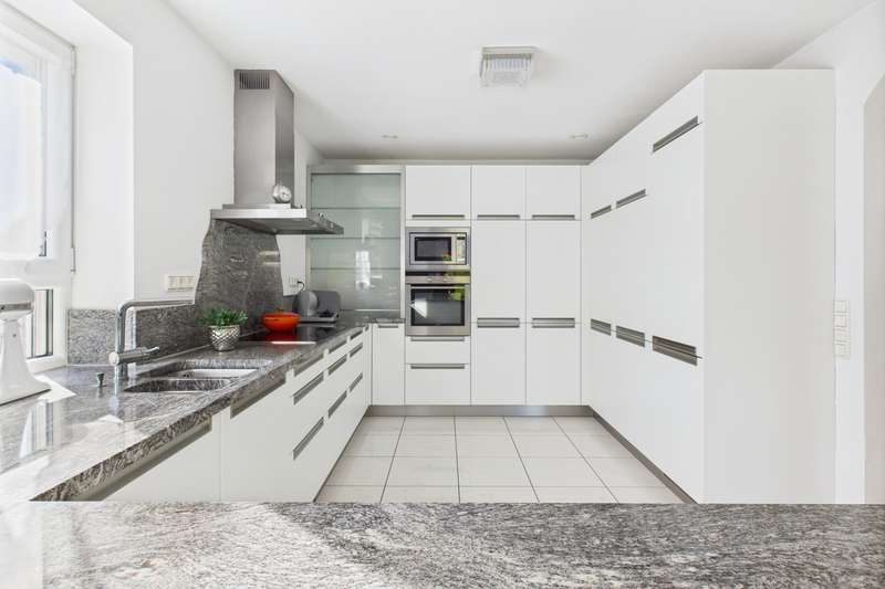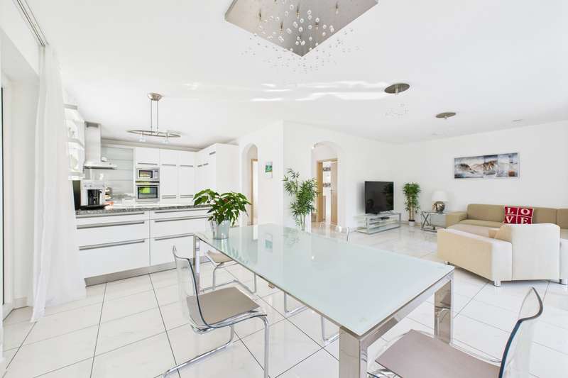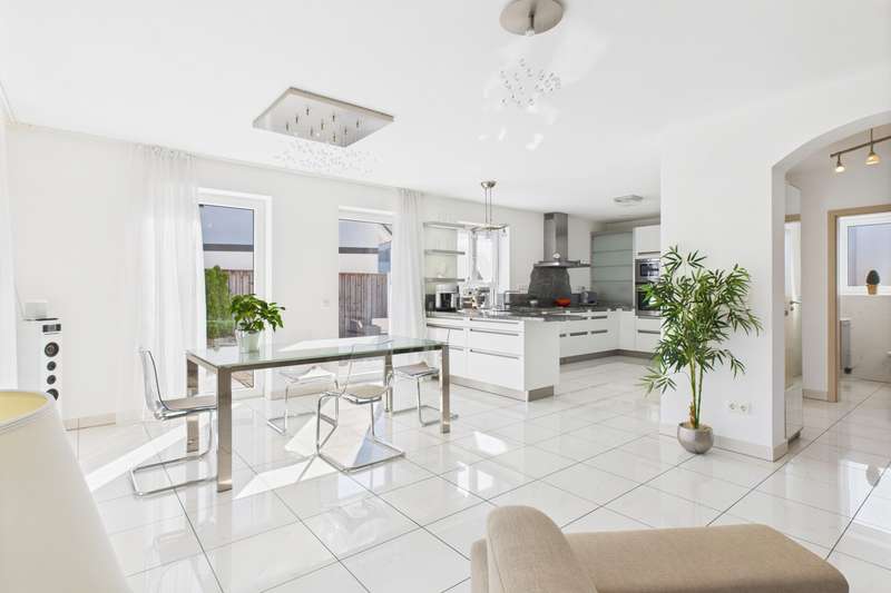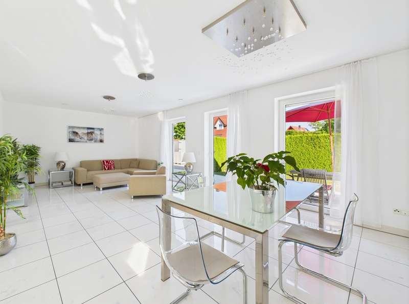 Welcome to this exceptional family home, which not only impresses with its contemporary architecture, but also with its versatile usage options. With a spacious layout, this home offers a unique living experience that combines both style and comfort. The well thought-out room layout creates an open and inviting ambience. The floor-to-ceiling windows allow plenty of natural light into the rooms and create a bright, friendly atmosphere that underlines the timeless elegance of the house. The open pointed ceiling gives the living area additional width and a unique sense of space. A special highlight of this property is the possibility of setting up practice rooms in the basement. The practice rooms are officially licensed and are perfect for professional use, whether as an office, studio or practice. This level is also equipped with a fully fitted kitchen and a modern bathroom, making it easy to combine work and comfort. In addition, the first floor offers a separately usable granny apartment, which gives you additional flexibility and is perfect for guests or as a separate living area. This house impresses with its first-class fittings and technical refinements. Equipped with a geothermal heat pump and an efficient ventilation system, it meets the highest energy standards and ensures a pleasant indoor climate all year round. The combination of modern technology and sustainable energy concepts makes this house future-proof and environmentally friendly. This detached house offers you an incomparable living and lifestyle experience. It is ideal for anyone who is looking for something special and has high standards in terms of style, comfort and functionality. Whether as a family residence or as a combination of living and working - this house will turn your dreams into reality. There are 4 parking spaces for your vehicles as well as a carport that meets both functional and aesthetic requirements. We cordially invite you to get to know this exceptional property during a personal viewing and see its advantages for yourself. Make an appointment today. We look forward to hearing from you.