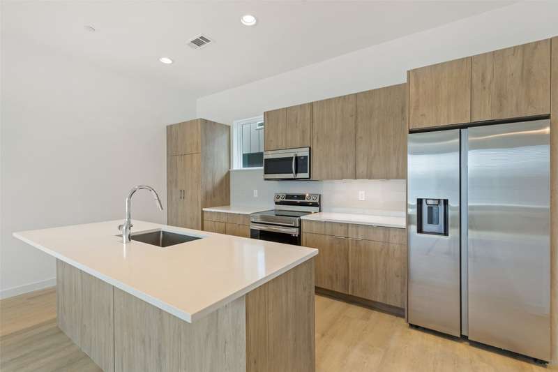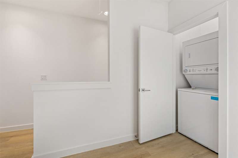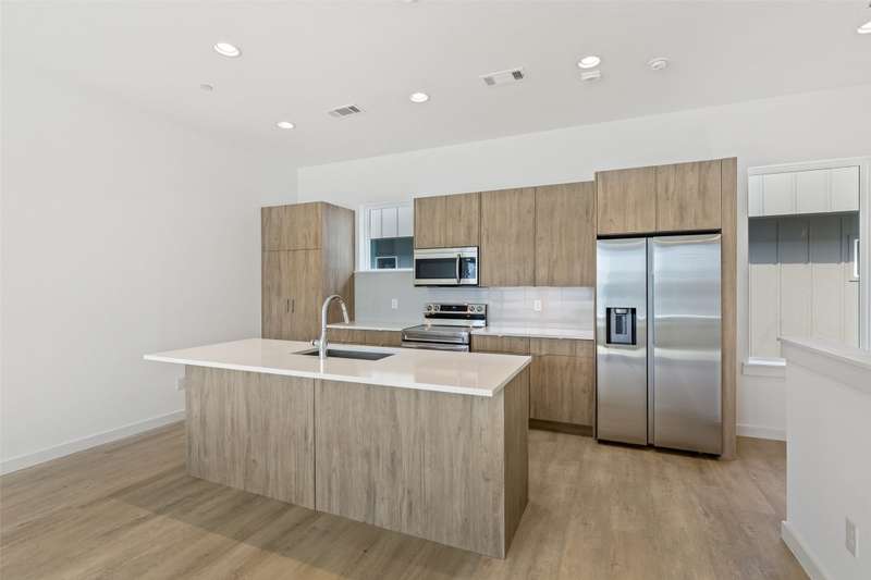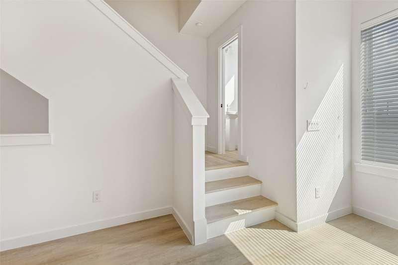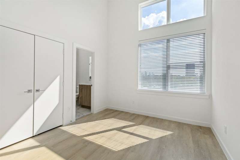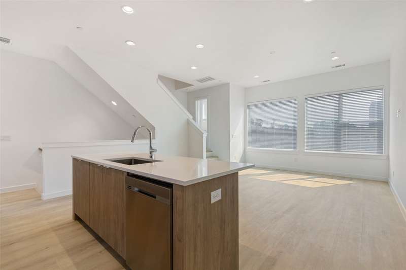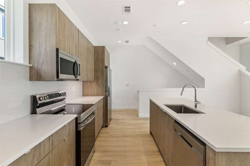 Stunning modern townhomes. First floor attached garage to formal entry. Ascend to the open living area with oversized windows, abundant light, open kitchen with quartz counters & stainless steel appliances, light oak color flooring, plus powder bath. There are two bedrooms upstairs with private baths. Additional amenities: hallway washer-dryer, LED lighting, keyless locks, programmable thermostats. Photos may be from a different unit of the same floorplan.