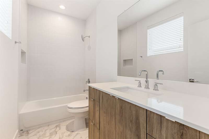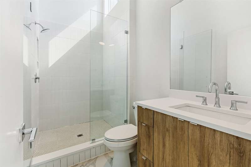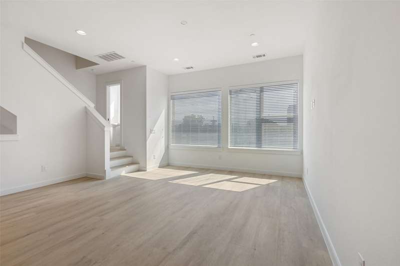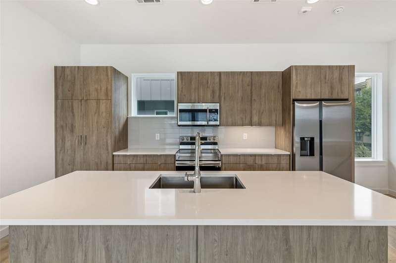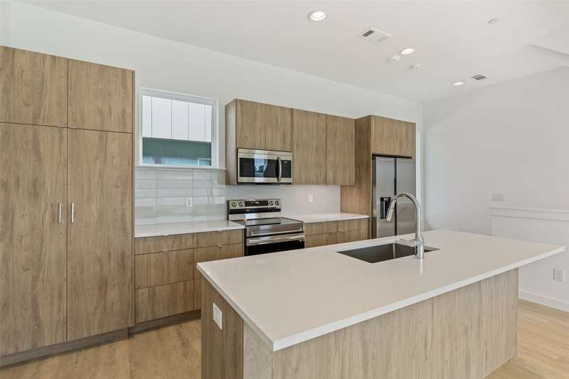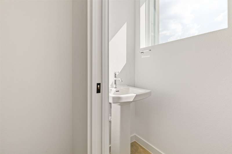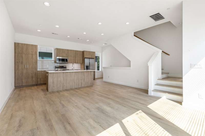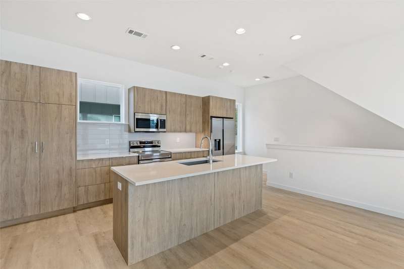Stunning modern townhomes. First floor attached garage to formal entry. Ascend to the open living area with oversized windows, abundant light, open kitchen with quartz counters & stainless steel appliances, light oak color flooring, plus powder bath. There are two bedrooms upstairs with private baths. Additional amenities: hallway washer-dryer, LED lighting, keyless locks, programmable thermostats. Photos may be from a different unit of the same floorplan.