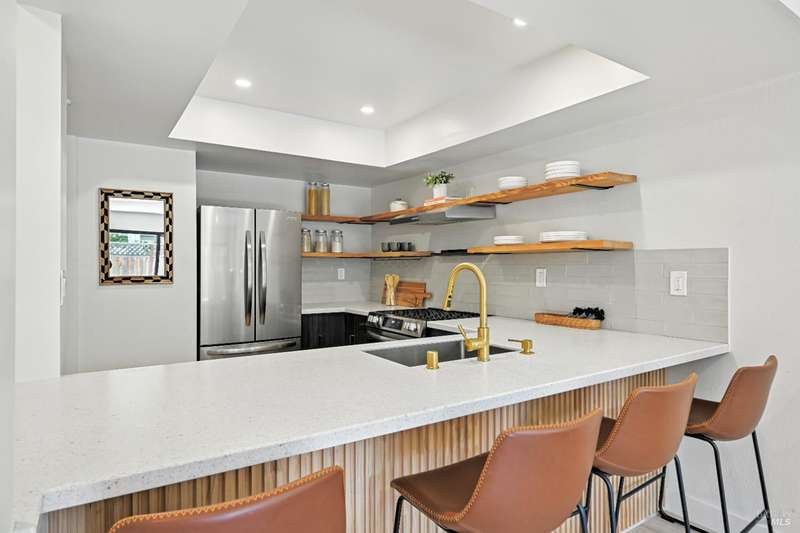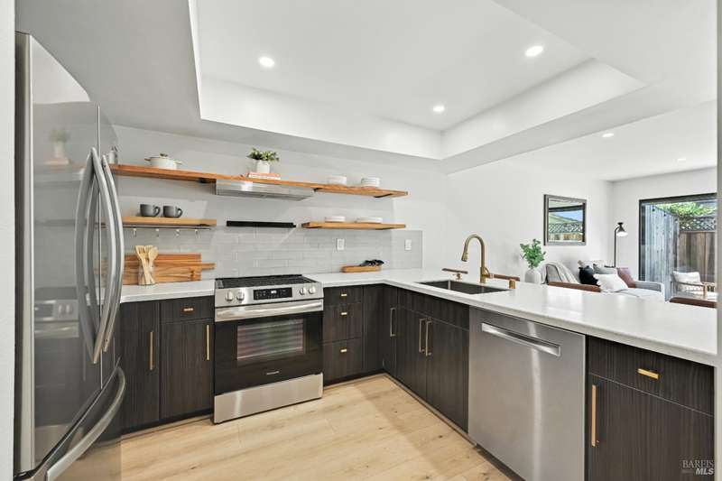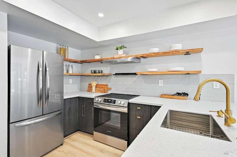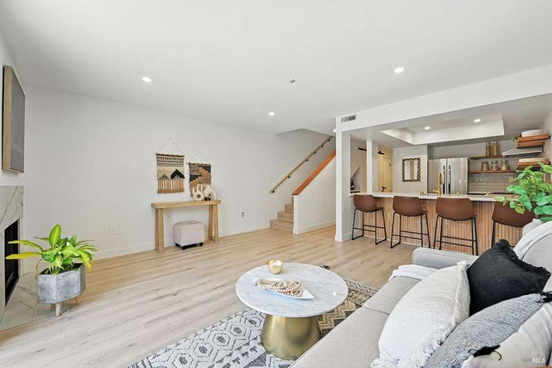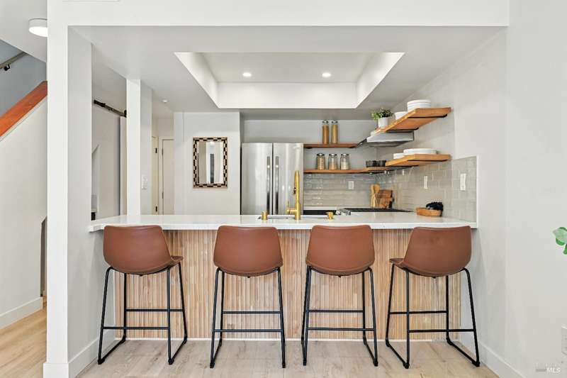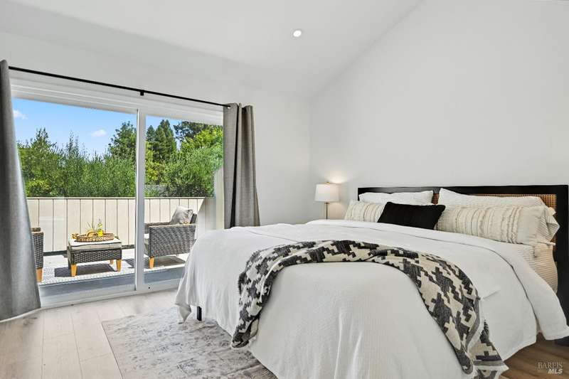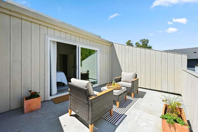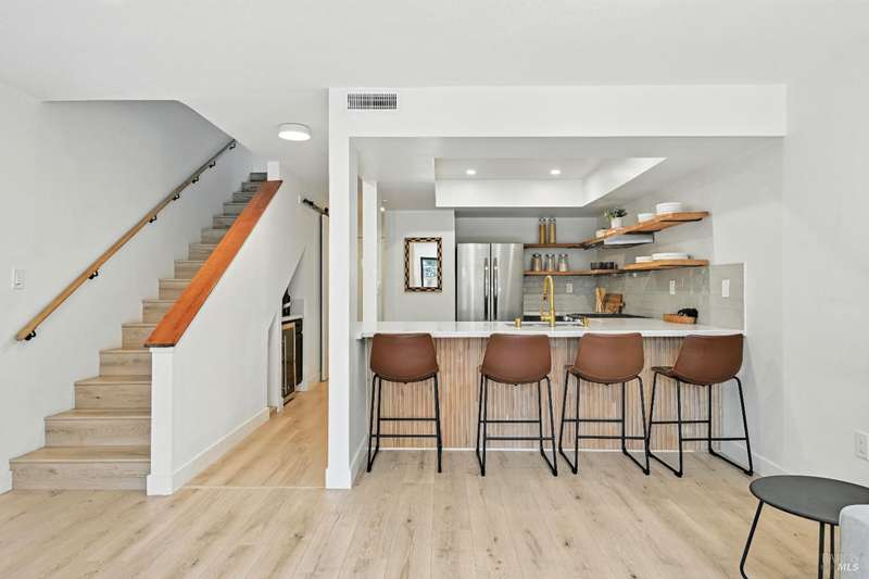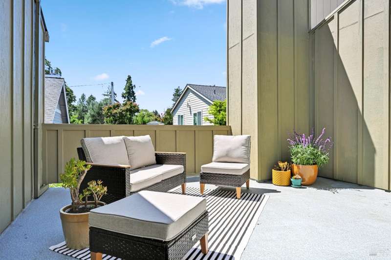 Big on decks, big on lifestyle! Just blocks from Healdsburg's downtown plaza, this beautiful, open and modern 2-bedroom, 1.5-bath condominium offers a rare blend of comfort and convenience in a boutique 8-unit community. Extensive updates include waterproof laminate flooring throughout, stainless steel appliances, fresh interior paint, recessed lighting, counters and cabinets, custom coffee and wine bar... this home has a polished feel. The main level offers an open living and dining area, featuring a stylish kitchen with a tray ceiling and bar seating, a refreshed half bath, wood-burning fireplace and in-unit full size washer/dryer stack and direct access to a private patio. Upstairs, vaulted ceilings and sliding doors flood both bedrooms with natural light. The true highlight?Each bedroom extends onto expansive decks, creating exceptional outdoor living spaces and ample extra square footage. Ideal for morning coffee or evening relaxation, with the east-facing deck offering views of Fitch Mountain. Enjoy a fully remodeled upstairs bath and a lovely loft space offering extra storage.