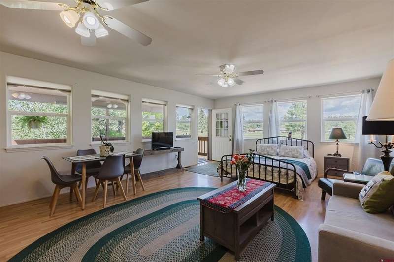 Alysha Ranson, Galles Properties, C: 970-903-1230, alysha@gallesproperties.com, www.crenmls.com: First time on the market, this single-owner home in the Pagosa Lakes Area offers an incredible combination of location, views, and versatility. Nestled on a quiet cul-de-sac and backing to the golf course, the property captures sweeping views of Pagosa Peak, Square Top, and the Pinon Lake. Inside, the living room invites you in with a cozy wood-burning fireplace and access to a deck, one of several - also located off the primary and guest bedrooms - for enjoying the outdoors. The kitchen and primary bathroom have been tastefully updated, and a generous pantry doubles as a laundry area with washer and dryer. A third bedroom is currently set up as an office, giving flexibility for your needs. The attached garage easily accommodates a long-bed truck, while the detached garage offers even more: a standard bay, RV bay, bonus/workout room, and above it all, a studio apartment with its own covered deck and breathtaking Pagosa Peak views. Whether you’re drawn to golf, mountain adventures, or simply want a home base to relax and take in the scenery, this property checks many boxes. With its thoughtful updates, versatile spaces, and unbeatable setting just minutes from groceries, restaurants, and shops, it’s a home ready for new memories to be made.