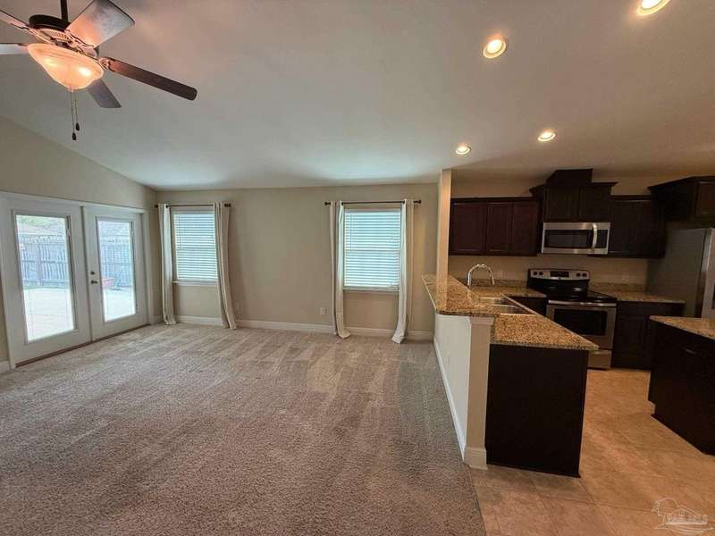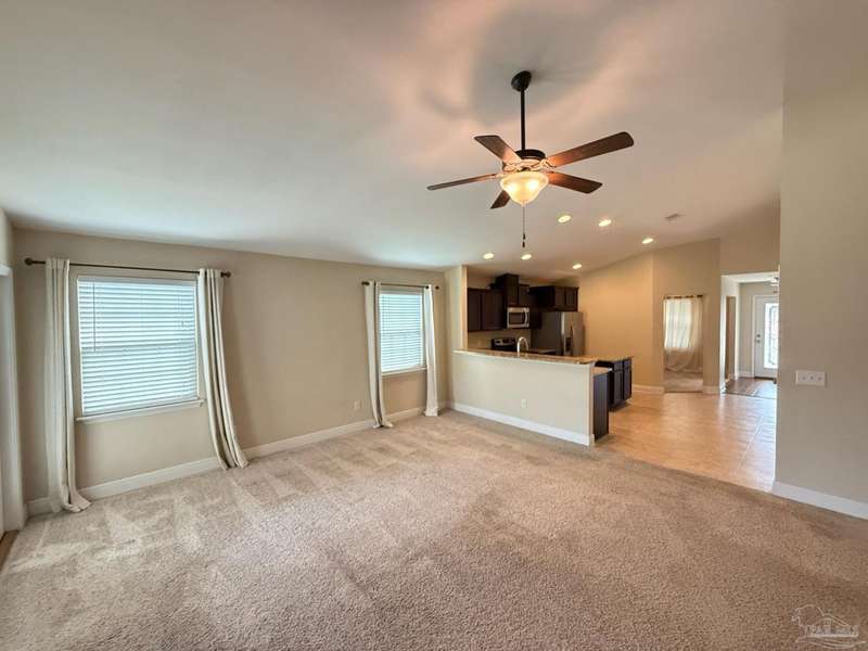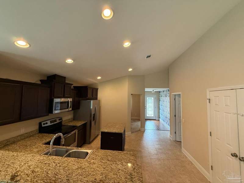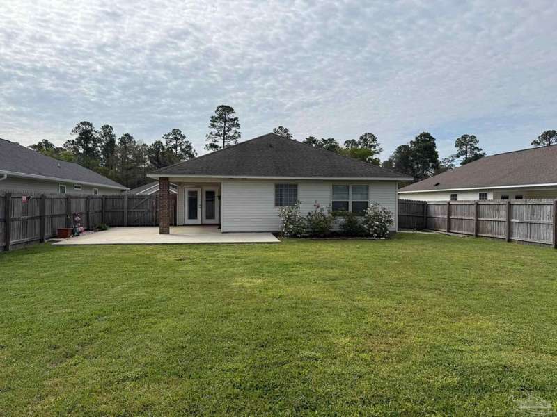 Don't miss this exceptional opportunity to own a stunning 2016-built cottage-style home at an unbeatable price point! This immaculate 3-bedroom, 2-bathroom retreat features soaring high ceilings with elegant tray details that immediately create a sense of luxury and space. The gourmet kitchen showcases rich dark cabinetry, gleaming granite countertops, premium stainless steel appliances, and a convenient center island - all complemented by durable tile flooring. Natural light streams abundantly through the home's many windows, creating a bright, welcoming atmosphere throughout. Retreat to the private primary suite offering a sophisticated tray ceiling, spa-inspired en-suite bathroom with separate shower, private water closet, luxurious granite countertops, and a generous walk-in closet. Outdoor living is truly exceptional with an oversized patio - perfectly designed with half covered for shade and half open for sunshine - all enclosed by a privacy fence for your personal oasis. This energy-efficient home includes double-pane windows, superior insulation, ridge vent system, copper wiring, circuit breakers, and public water/sewer connections. Ideally situated near Avalon and Pace, Florida, enjoy the perfect balance of peaceful residential living with easy access to everyday conveniences. This remarkable value simply won't last long in today's market - schedule your showing today!