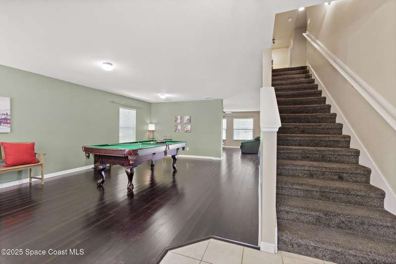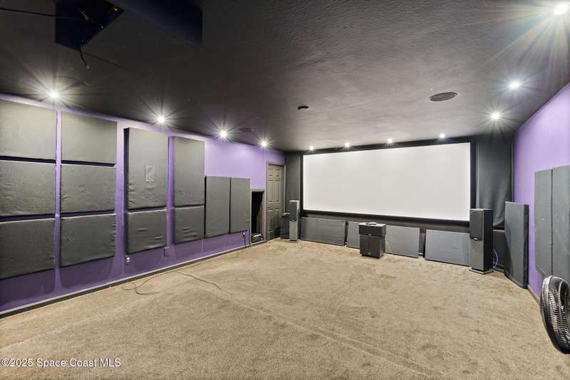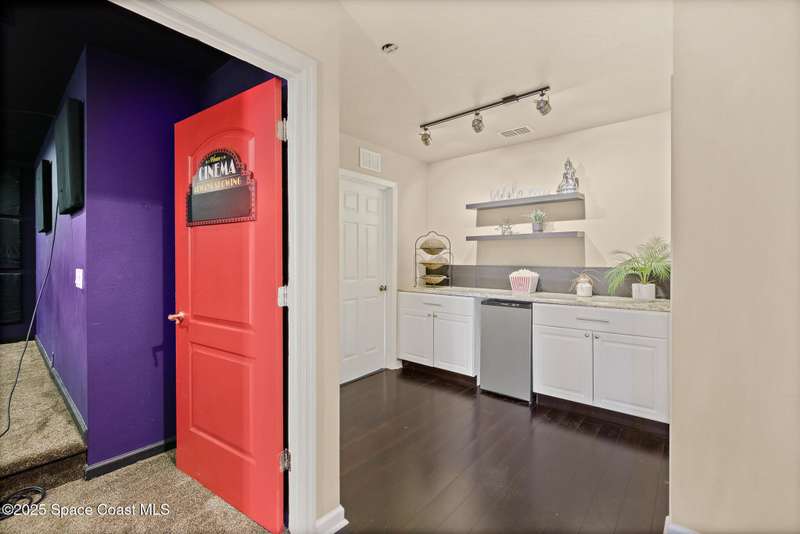 VERY MOTIVATED SELLER!!! Waterfront Beauty with Theater Room in Fern Meadows! Tucked away in the popular Fern Meadows community, this spacious 3-bedroom, 2.5-bath home with a bonus theater room (or optional 4th bedroom) offers the perfect mix of comfort and entertainment. Enjoy peaceful waterfront views from your oversized covered back porch, where nature and wildlife create a relaxing backdrop. Inside, you'll find an open layout with plenty of space to gather and entertain. The upstairs bonus room has been transformed into a fully equipped home theater, featuring a projector, screen, platform seating, ambient lighting, and built-in speakers-all included! Prefer a bedroom instead? The space can easily be converted back. There's also a kitchenette upstairs, complete with a mini fridge and storage-great for a coffee bar, snack station, or movie night setup. The main kitchen includes all appliances, and the home is wired with Cat6 Ethernet, cable, and DirecTV connections Other Other features include hurricane shutters, an oversized garage, durable bamboo wood and tile floors, and ample storage throughout. Located just west of I-95 off SR 520, Fern Meadows offers a convenient commute to Orlando, the Space Coast, local beaches, and the airport. Neighborhood amenities include a playground, gazebo, basketball, and tennis courts. Whether you're looking for your forever home or a peaceful retreat with entertainment perks, this home is a must-see!