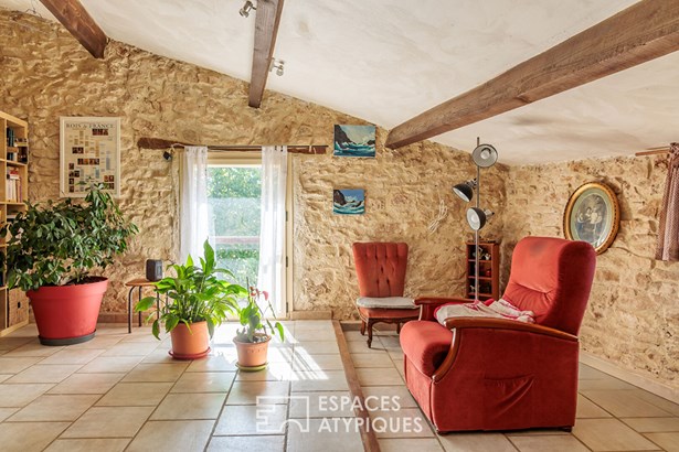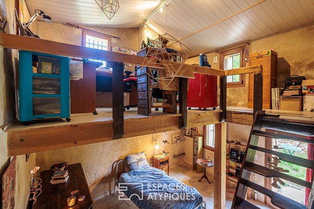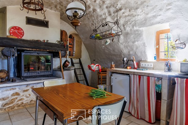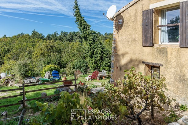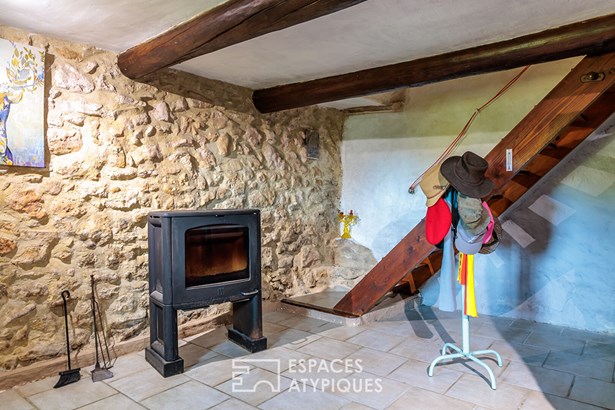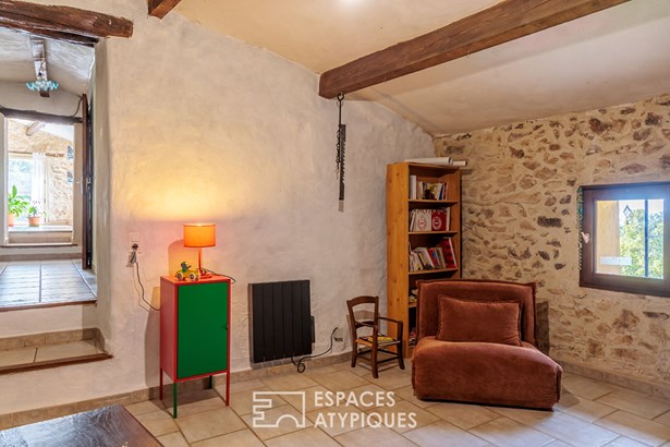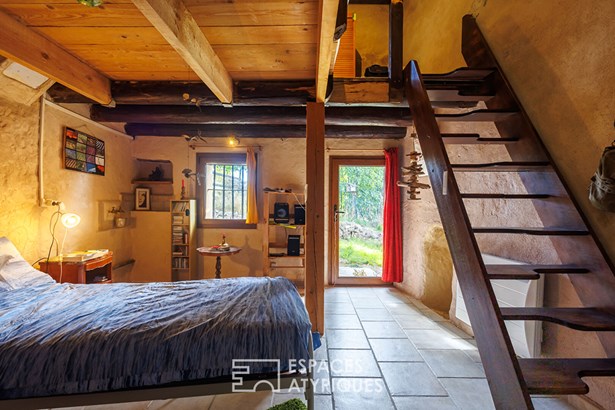 The house, built on split levels, seduces with its simple and rustic charm. The vaulted kitchen, the true heart of the home, hosts the family table and a stove that heats the entire house. Upstairs, accessible by a miller's ladder, a corridor leads to two bedrooms with a warm character, each with direct access to the outside. An open room, ideal as an office or library, and a pretty room that can become a living room or reading room complete the ensemble. A shower room and separate toilet add comfort and functionality.