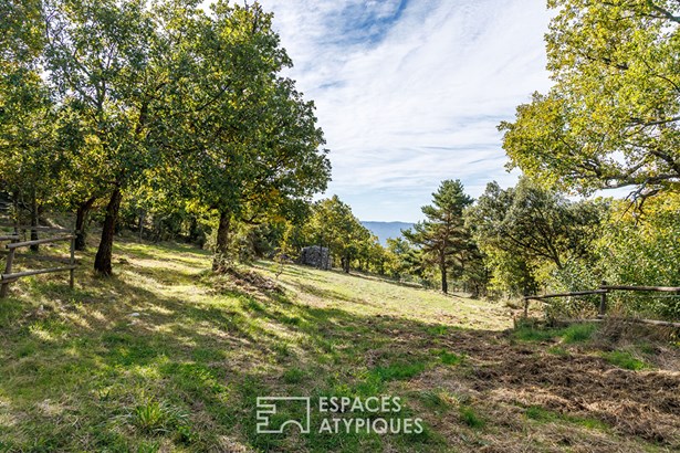 On the heights of the Monts de Vaucluse, this former stone sheepfold of approximately 120 sqm flourishes on more than 2.5 hectares of wooded land and meadows. A timeless place, bathed in calm and light, where nature shapes every perspective and where authenticity remains intact.