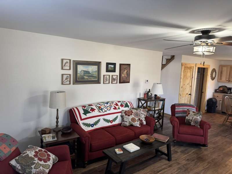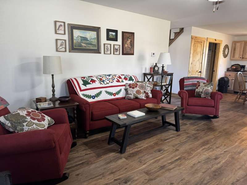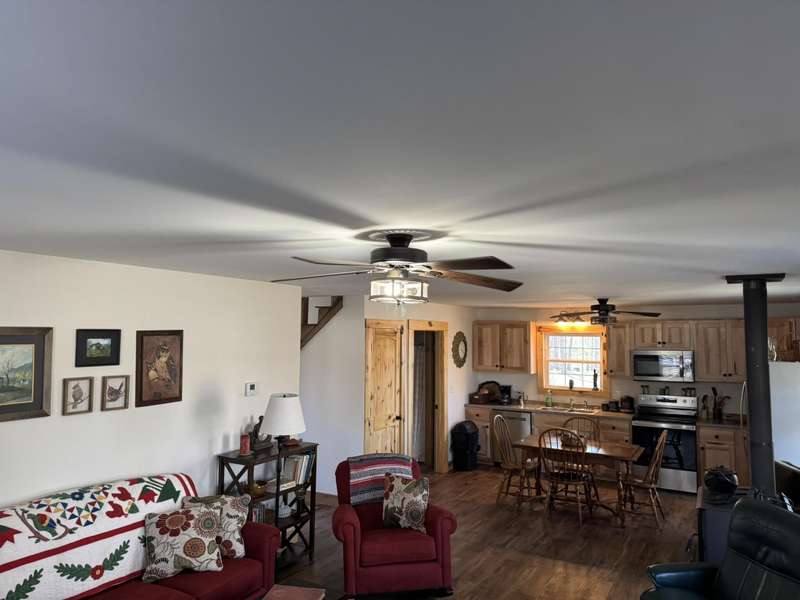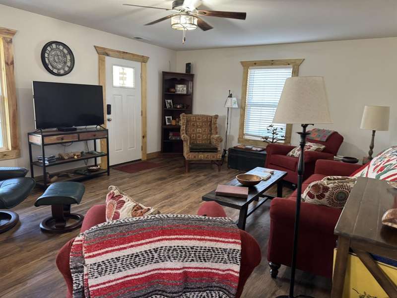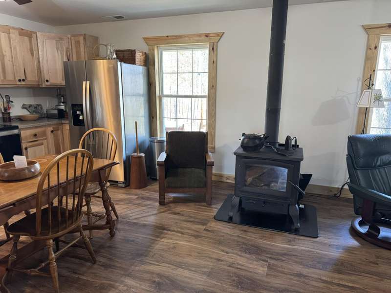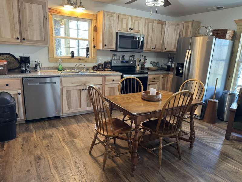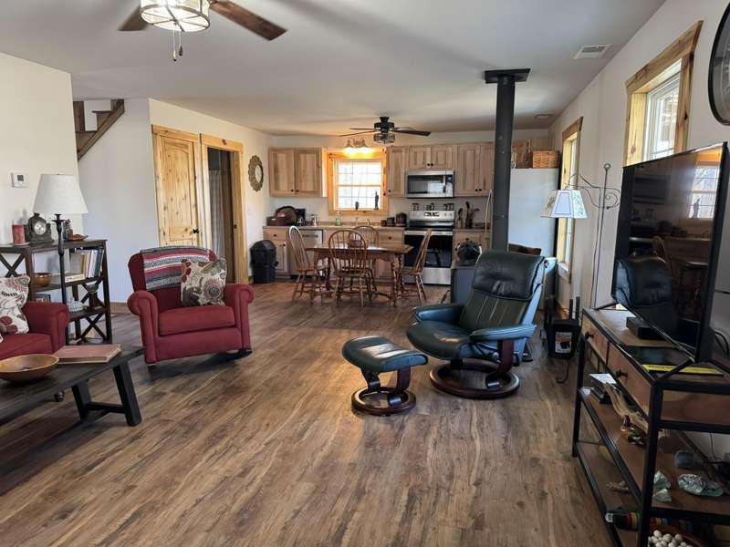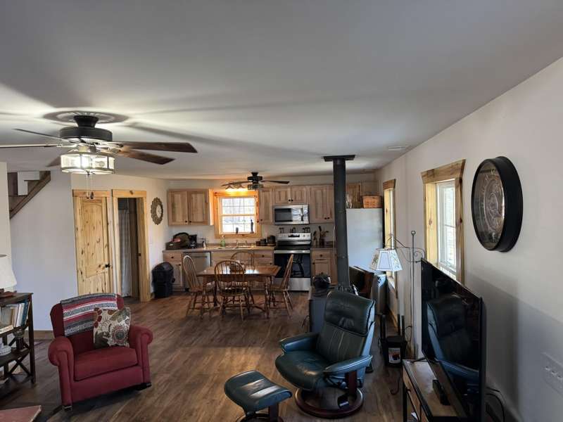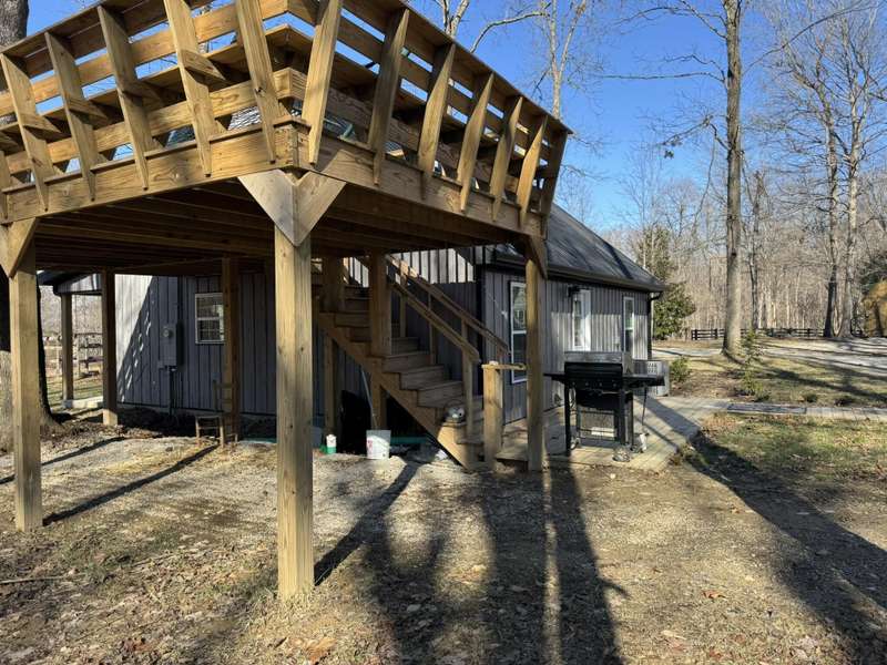Welcome to this delightful 2-bedroom home, nestled in a tranquil environment that's just a short drive from Liberty and mere miles from the attractions of Lake Cumberland and Green River. This residence boasts a spacious living area, designed with versatility in mind to suit any lifestyle, whether you're entertaining or enjoying peaceful evenings in. The first floor is bright and inviting, featuring a cozy shared dining area where you can relax and connect with family or friends. With large windows allowing abundant natural light, the space feels warm and welcoming. On the second floor, you'll find a bedroom and a full bath, along with a comfortable sitting room. From this level, there's also access to a generously sized 16x24 deck, perfect for enjoying the outdoors. Both bedrooms are thoughtfully designed for comfort, making it easy to unwind. Set on over 1.5 acres, this property provides ample space to relish the beauty of nature in a setting that's picture-perfect. Additionally, buyers have add an adjacent 1.7-acre lot for even more space as well as a 40 ft storage container. This home truly embodies a harmonious lifestyle, combining comfort with accessibility