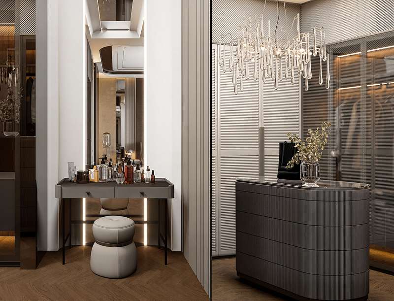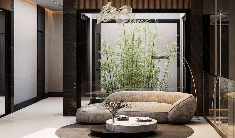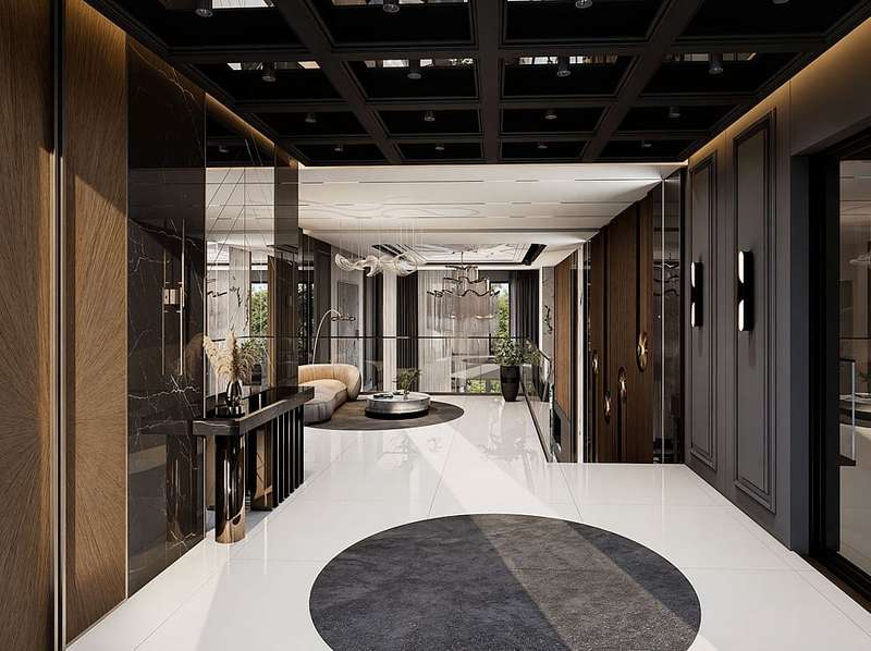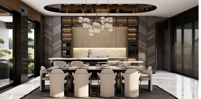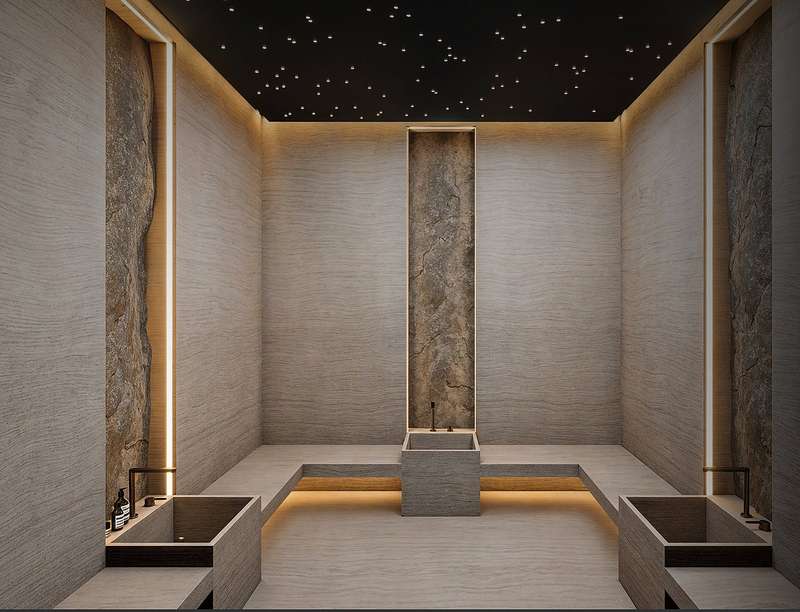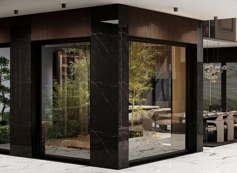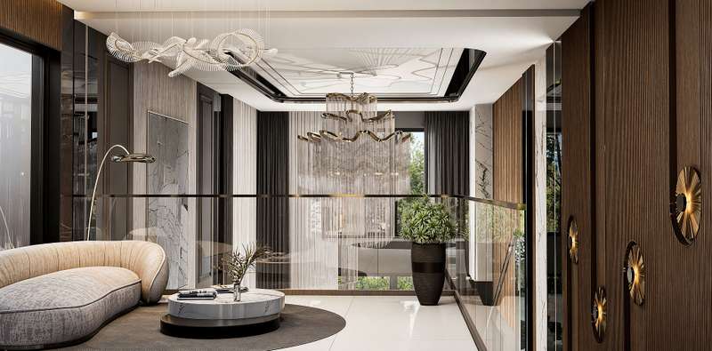 The villas in Taspinar feature spacious and functional layouts including 7 bedrooms, a large living room, an open-plan American-style kitchen, a wide veranda, pantry, walk-in closet, an inner garden, a laundry and ironing room, a Turkish bath, hobby/cinema room, fitness room, technical room, and 4 bathrooms. These well-equipped homes are ideal for those seeking a comfortable and privileged lifestyle.