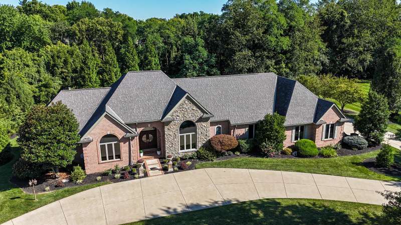 Stunning Custom Built Brick Ranch in Sought-After Country Squire Estates! This beautifully designed home offers over 6,000 square feet of luxurious living space with 4 generous bedrooms, 5 full baths, and high-end finishes throughout. Step into elegance with soaring ceilings, rich hardwood floors with inlays, crown molding, and a dedicated home office with built-ins and french doors. The white gourmet kitchen features granite countertops, island, stainless steel appliances, double ovens, and a large pantry perfect for entertaining! Retreat to the expansive finished lower level, complete with a kitchenette/wet bar, recreation room, flex space, steam shower, cedar closet, and a huge guest suite with ensuite bath and walk-in closet. Walk out to your private backyard oasis boasting a covered patio, in-ground pool, and hot tub perfect for entertaining family and friends. Additional highlights include fresh neutral paint, new carpet, a circle drive, and an oversized 3-car garage. Exceptional Home!