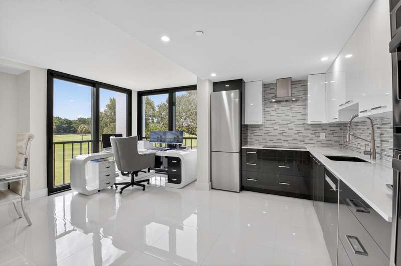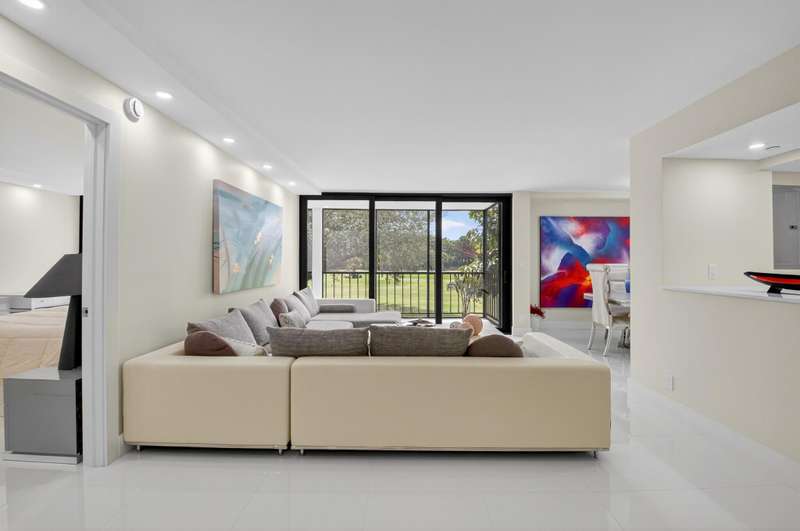 Unique unit, Complete renovation in 2024. Impact glass. New air conditioner. New hot water unit. Brsand new kitchen with 36 inchEuropean style cabinets. Double oven. Bosch refrigerator and dishwasher. Porcellin tile thruout. Golf and pool views, No popcorn. Small patio enclosed providing more air conditioned living space, No popcorn. Mandatory membership. Golf memberships available. Joining fee $150,000. BUY NOW. ENJOY THE BOCA WEST LIFESTYLE,