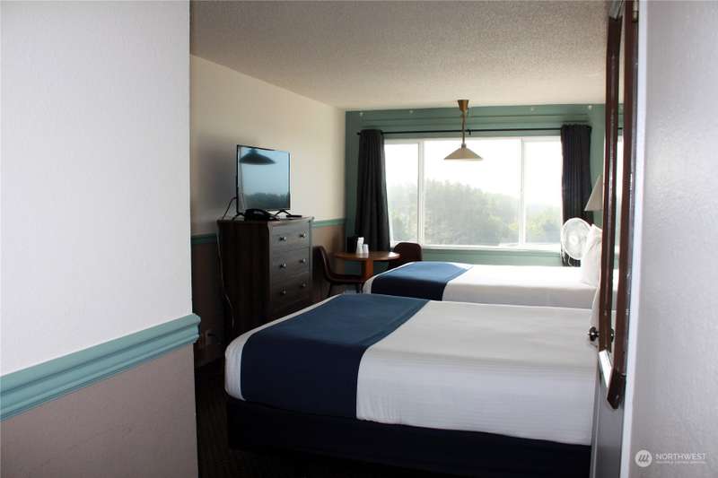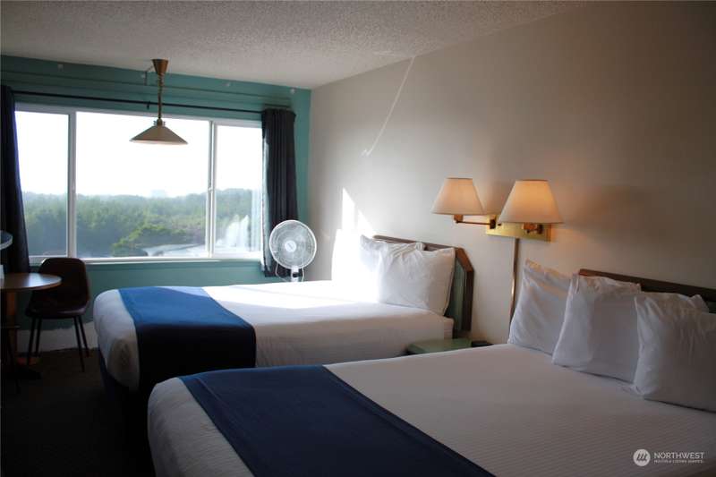 Third floor 2 queen bed unit at Chateau Westport. Ocean view. The Chateau is a condotel. Hotel style rooms. 2 Queen Beds, full bath, mini fridge & microwave. Chateau has the only indoor Pool in Westport along with a Kid zone, Playground, Volleyball, Basketball & direct access to the beach. Owner and immediate family are allowed to use room for up to 45 days per year. New laminate flooring & furniture coming, building-wide. With the potential proposed Scottish Links Golf Course right down the road, this would make a perfect, affordable place to stay while golfing and playing at the beach. Owners also share in ownership of entire property and common areas. No full time use allowed. No owner rentals.