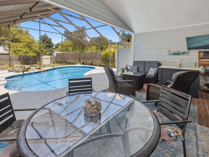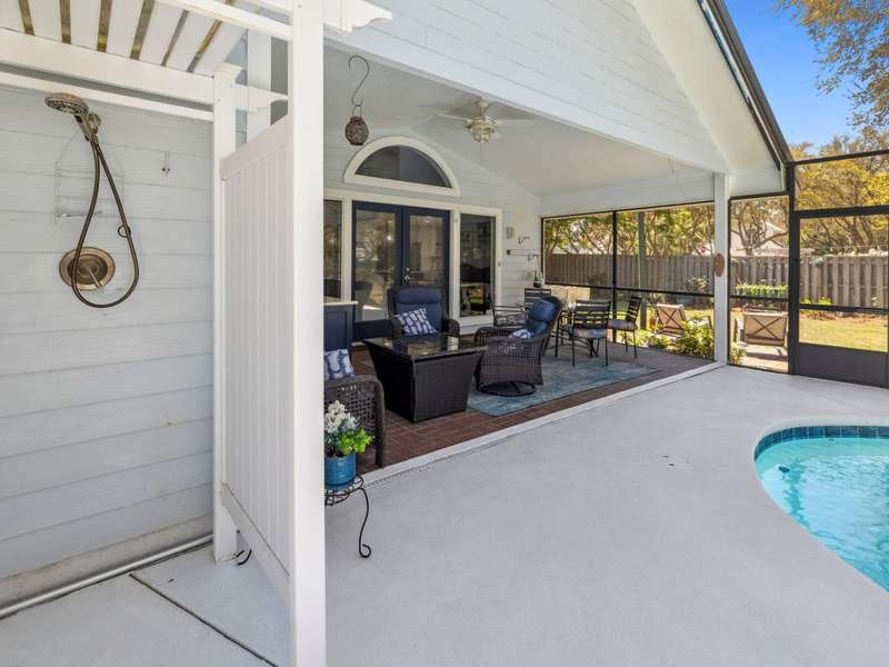 Welcome to coastal luxury in the charming non- rental community of Seabreeze, where this stunning residence captures the essence of Gulf Coast living. Situated along the iconic 30A in the heart of Seacrest, this beautifully appointed home is just a three-minute stroll from the community's deeded, gated beach access. From there, you'll find yourself on the sugar-white sands and gazing out at the emerald waters of the Gulf?a true slice of paradise. This meticulously maintained home features three bedrooms, two full baths, and a half bath. Recent renovations completed between 2021 and 2023 offer peace of mind and include a new roof, HVAC system, a 75-gallon hot water heater, fresh interior and exterior paint, a screened pool enclosure, a convenient outdoor shower, sprinkler system with new Flotec motor and Rain Bird controller, and updated kitchen and bathrooms.The first level of the residence boasts two spacious, light-filled living areasperfect for relaxing or entertaining. The gourmet kitchen is a chef's dream, equipped with high-end appliances including a smart refrigerator, elegant quartz countertops, and abundant storage space. Also on the main floor, the primary suite offers both comfort and convenience, complete with a beautifully updated ensuite showcasing modern finishes. Upstairs, a versatile sitting area or home office leads to two additional bedrooms and a fully updated guest bathroom. With the secondary bedrooms located on the upper level, this thoughtful layout provides added privacy for family or guests.The expansive outdoor living space offers a seamless blend of comfort, function, and natural beauty. At its center, a resort-style saltwater pool shimmers under the Florida sun, complete with a waterfall and newly updated screened enclosure, ensuring year-round enjoyment. The spacious lanai offers the perfect setting for elevated entertainment or relaxed lounging, blending indoor comfort with the beauty of the outdoors. Beyond the screened haven, generous green space unfolds- ideal for games, celebrations, or quiet evenings by the fire pit. The surrounding landscape is enhanced by a collection of fruit-bearing trees including orange, lemon, fig, blueberry, and olive. The grounds offer a private, garden-like escape that captures the essence of coastal living. Residents enjoy access to a scenic community trail located on the west side of the neighborhood, leading to a canoe and kayak launch. The launch features a dedicated dock perfect for peaceful evenings watching the sunset over the tranquil waters of Camp Creek Lake. This Seabreeze gem combines luxury, location, and lifestyle making it the perfect home for creating unforgettable memories. Home being sold furnished with a few exceptions. Please see documents section. Dimensions, Square footage, & lot size are approximate and should be verified by buyer.
