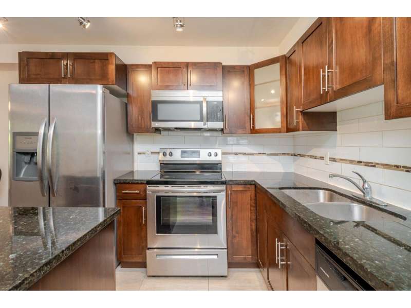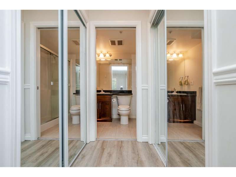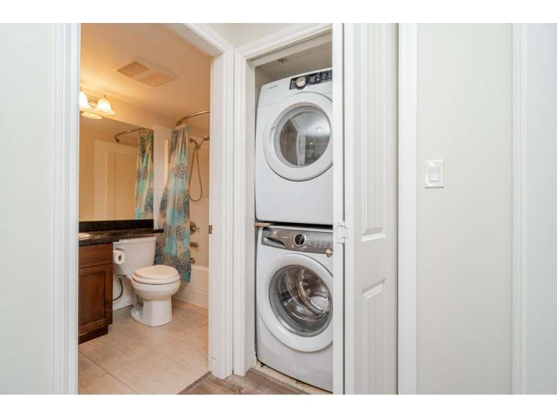 Welcome to Paddington Station in Downtown Langley! This spacious 854 sqft 2 bed, 2 bath ground floor CORNER unit features some newer flooring, granite counters, stainless steel appliances, and in-suite storage. The primary bedroom offers A/C, dual closets, and a private ensuite with oversized shower. Enjoy a nearly 250 sqft patio-perfect for relaxing or entertaining! Amenities include gym, guest suite, kids' playroom, meeting & party rooms, and bike locker. Pet & rental-friendly, allowing 2 dogs (22"), 2 cats, or combo. Includes 1 underground parking stall and ample visitor parking. Steps to shops, restaurants, parks, schools, transit, and the future SkyTrain! A great opportunity in a high-growth area! (id:58403)