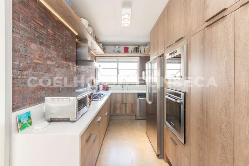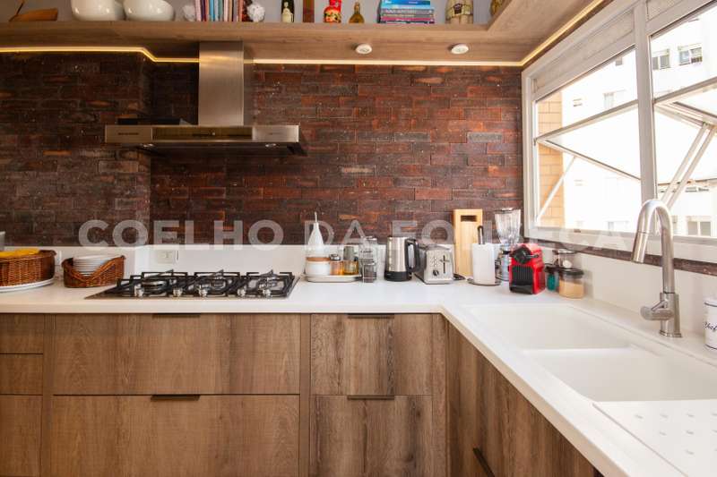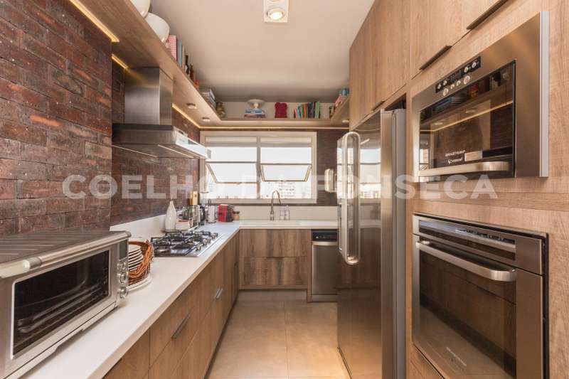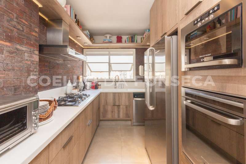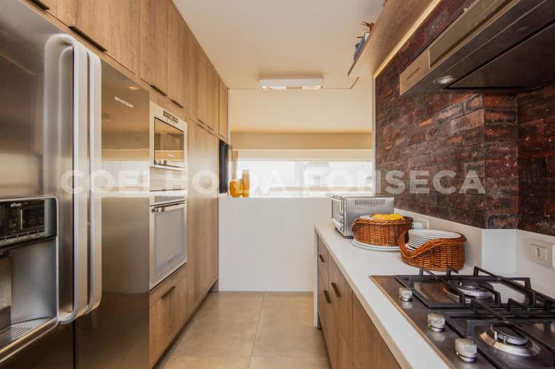 Cozinha repleta de armarios e eletrodomesticos de qualidade, com tijolos Pallimanan, que pode ser americana ou fechada, dependendo da ocasiao.
