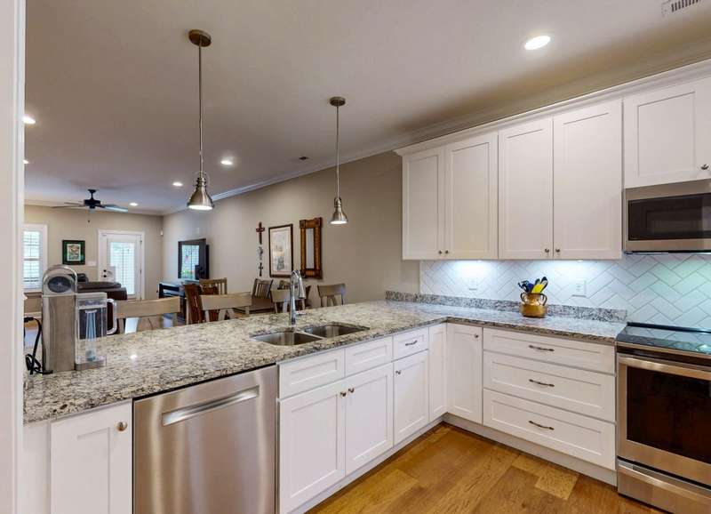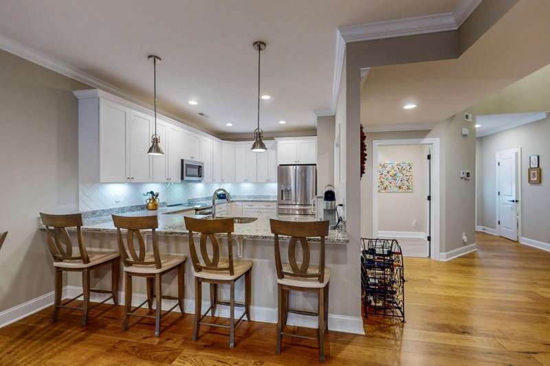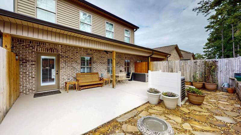 Custom, Custom, Custom....this almost new townhome has been totally customized when owner purchased. This one is really Move-In ready. Offers 3 bedrooms, 2 1/2 baths, all new appliances that remain. Hardwood and tile throughout. Lots of storage everywhere. Has approx 2,100 sq. ft; double garage with epoxy floors. Owners' suite and owners' bath with tray ceiling, walk-in tile shower, double vanities & large walk-in closet. Sunny gourmet kitchen with shaker cabinets & granite counter tops. Partially covered patio with privacy fence, a wall, lots of landscaping, & very private. If you want easy living and great location. Come see this townhome today!