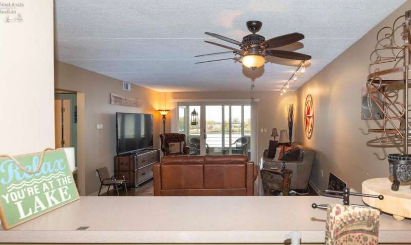 Beautifully renovated 2-bedroom, 2-bathroom condo located on the 5th floor of Marina Tower with stunning views of the harbor and marina from the screened-in porch. This unit features new flooring, updated tile in the kitchen and bathrooms, fresh paint, new appliances, and comes partially furnished. Additional highlights include a one-car garage, separate storage unit, and elevator access. The gated community offers amenities including a clubhouse with fitness center, swimming pool, tennis court, and basketball court. The tower also features their own pool. Prime location near Cedar Point, Castaway Bay, nature preserves, the islands, fine dining, shopping, and more - experience low-maintenance, resort-style living at Marina Tower.