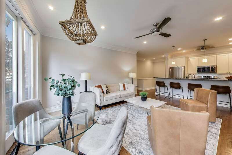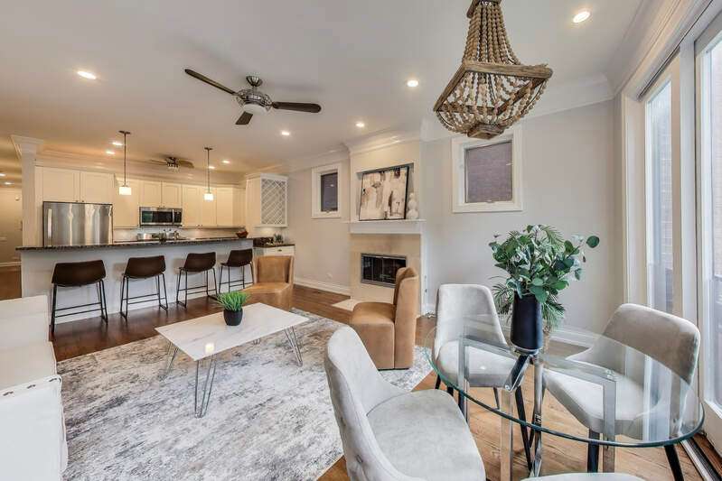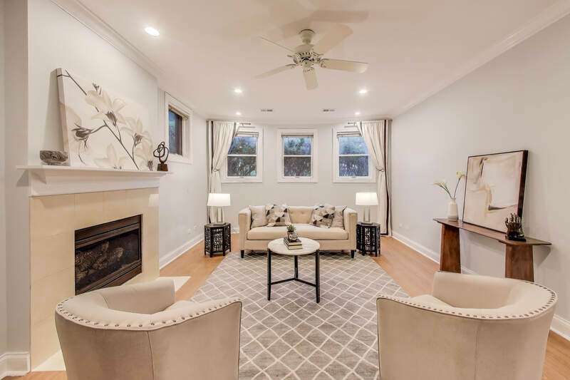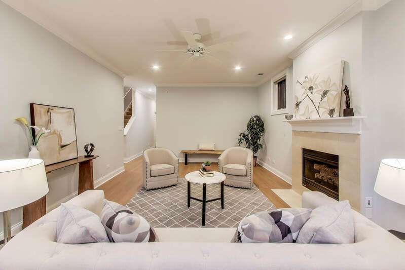 Freshly updated duplex down home in Lincoln Park. This 3 bedroom plus office 3 bath spacious home is move-in ready. The main level offers an open floor plan with high ceilings, oversized west facing windows, gas fireplace, and ultra wide moldings. The white kitchen features stainless appliances, granite counters with bar seating, abundant storage, and a custom wine bar. The primary suite includes a large walk-in closet with organizers, private deck, and updated bath with jetted tub and stone tile. A second bedroom with custom closet and updated full bath with walk-in shower and stone finishes complete this floor. The lower level includes a massive recreation room with high ceilings, second gas fireplace, and large windows. A queen-size third bedroom with full wall of closets sits next to the third updated full bath. Bonus room doubles as office, gym, or massive storage. Full size side by side laundry closet and additional under-the-stairs storage included. Two-car parking, back deck, and shared front turfed yard. Prime location with easy access to restaurants, coffee shops, shopping, and transit in the heart of Lincoln Park. HOA $275, 2023 taxes: $11,604