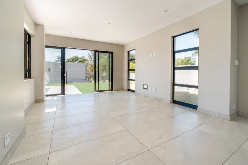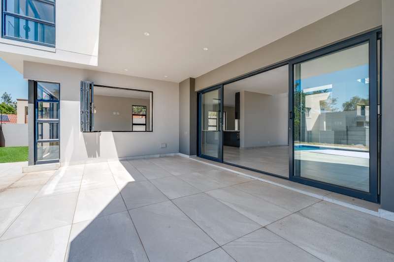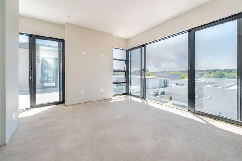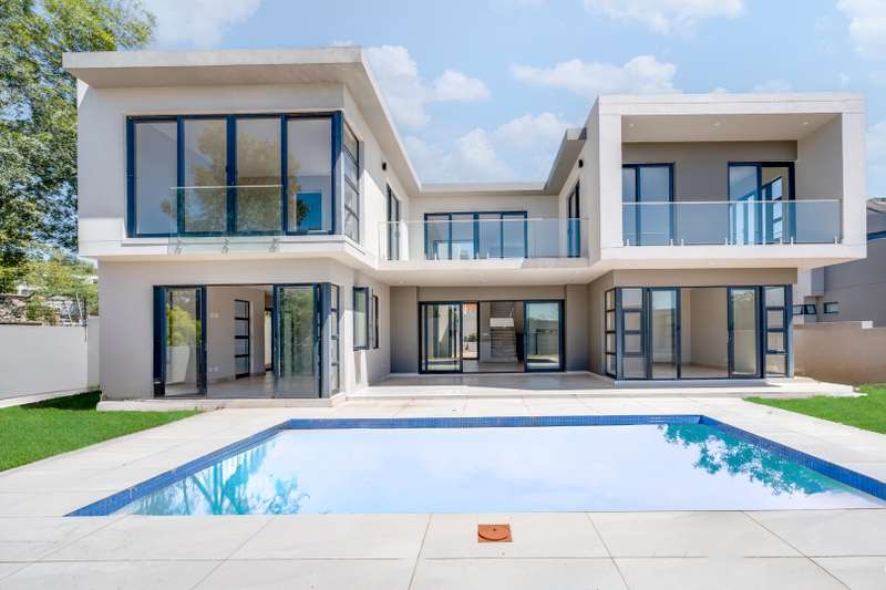 An Exceptional Opportunity to Complete a Contemporary Masterpiece in Bryanston East Set in one of Bryanston East’s most coveted addresses, this striking architectural home presents a rare chance to add your personal finishing touches to a modern masterpiece. Designed with bold lines, expansive proportions, and an effortless flow of natural light, the home offers the perfect canvas for a luxurious lifestyle. Step into a voluminous double-volume entrance that leads to spacious, open-plan living areas designed for both relaxed family living and sophisticated entertaining. Large glass doors open out to an elevated pool , expansive patio, and a generous garden space with panoramic views — the ideal setting for creating a breathtaking entertainment haven. At the heart of the home, the gourmet kitchen impresses with a 6-burner Siemens gas hob and oversized oven, stone countertops, sleek soft-close cabinetry, and provision for a fully integrated fridge and freezer. A separate scullery and walk-in pantry maintain the clean, minimalist aesthetic while offering ample functional space. Designed for seamless entertaining, the kitchen connects effortlessly with the living and outdoor areas. The home boasts five generously proportioned en-suite bedrooms, including a private guest suite downstairs. Each bedroom opens onto its own balcony, taking full advantage of the sweeping eastern views. The master suite is a sanctuary of light and luxury, with expansive windows, a bespoke dressing room, and a spa-inspired bathroom complete with Hansgrohe fittings. Premium Features Include: • Designer bathrooms featuring Hansgrohe fittings and a refined, spa-like ambiance • Custom cabinetry and bespoke storage throughout • Gourmet kitchen with top-end appliances and stone countertops • Master suite with treetop views, a luxury shower, and tailored dressing space • Double automated garage plus additional parking for three vehicles • Luxury staff accommodation to complement modern living This is your opportunity to bring your vision to life in a home that combines architectural excellence with limitless potential. Don’t miss your chance to make this unfinished gem your forever home.