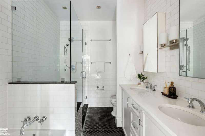 This level also hosts a sunlit bedroom and a full bath with stylish finishes. Upstairs, retreat to the palatial primary suite featuring generous closet space, an en-suite bath, and direct access to a private south-facing roof terrace-your own tranquil escape. A third spacious bedroom with a walk-in closet and en-suite bath, a cozy den perfect for a home office, and an in-unit Whirlpool washer + dryer complete the upper level.