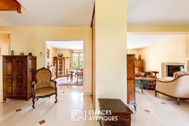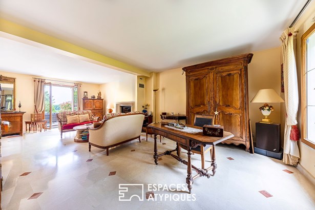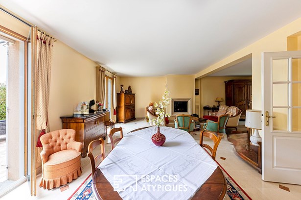 Conceived as an invitation to light, each space has been designed to magnify the volumes and create a perfect harmony between interior and exterior. From the entrance, the generosity of the spaces captivates, a vast living room of 55 sqm, bathed in light by large bay windows, creates a unique feeling of escape.