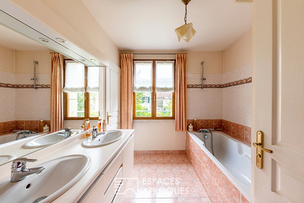 Upstairs, a vast landing room bathed in light elegantly unfolds a 27 sqm master suite with a custom-made dressing room, a bathroom and private WC. Three additional bedrooms, designed as true cocoons, share a bathroom and a WC. The villa has a full basement that will meet your most daring projects, and two outdoor parking spaces. Secured by a motorized gate and a videophone, it offers a living environment as peaceful as it is exclusive.