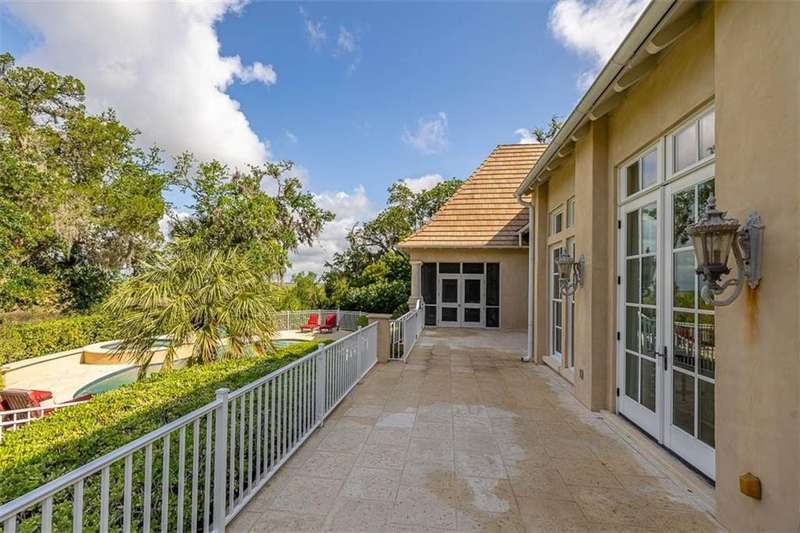 Welcome to 117 Hawkins Island Circle, a luxurious residence nestled within the exclusive, gated community of Hawkins Island. Designed by renowned local architect John Rentz and constructed in 2006, this elegant home sits on a beautifully landscaped 0.83-acre lot, offering expansive, panoramic marsh views. Spanning approximately 6,261 square feet, every detail of this home reflects sophistication and timeless design. As you step into the grand foyer, you are greeted by soaring ceilings, intricate millwork, and a welcoming ambiance. The formal dining room, adorned with large windows and elegant wallpaper, sets the stage for memorable gatherings. Adjacent is a thoughtfully designed butler's pantry equipped with a dishwasher, mini fridge, wine cooler, and ice maker—ideal for seamless entertaining. The heart of the home is the gourmet kitchen, featuring a spacious island, Thermador gas range and oven, Sub-Zero refrigerator, and Miele dishwasher. Open to the kitchen, the inviting family room boasts custom built-ins and access to a screened porch with a gas grill, all overlooking the breathtaking backyard and marsh views. A formal living room showcases a stately stone fireplace and a wall of windows that frame the serene outdoor scenery. The primary suite offers private access to the veranda and features dual baths for unparalleled comfort and convenience. Three additional main-level bedrooms, each with ensuite baths, provide ample space for family or guests. A well-appointed laundry room with abundant cabinetry, counter space, and a sink adds practicality, along with a half bath on this level. Upstairs, a private retreat awaits, featuring a pecky cypress office, a cozy sitting area with built-ins, a full bath, and a spacious bedroom or recreation room with its own bath. Step outside to the backyard oasis, where a heated pool and spa are perfectly positioned to capture stunning sunset views. The oversized three-car garage and additional parking ensure ample space for vehicles and storage. Whether you are seeking a primary residence or a second home, this exceptional property offers the ultimate in coastal living. Conveniently located near St. Simons Island’s finest dining and shopping, this home is ready to become your personal haven. Schedule your private tour today and experience the unparalleled beauty of 117 Hawkins Island Circle. Please make your appointment to view this exceptional home today.
