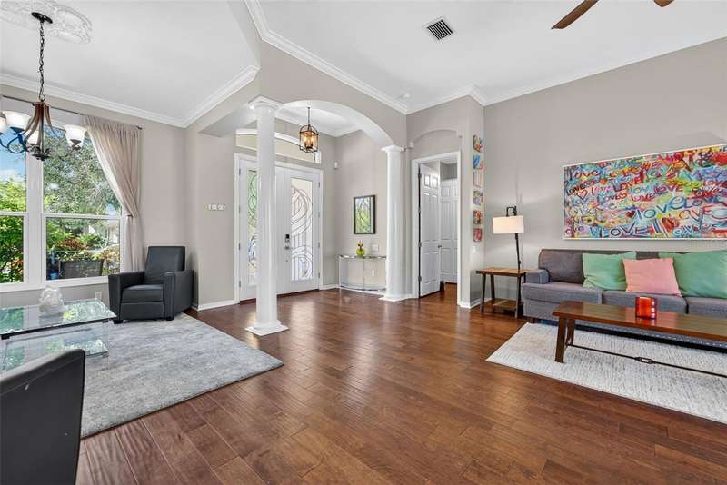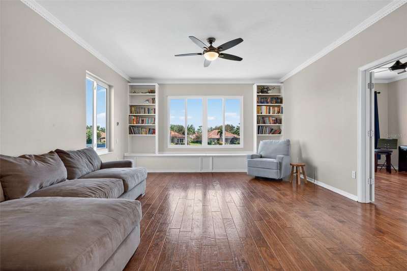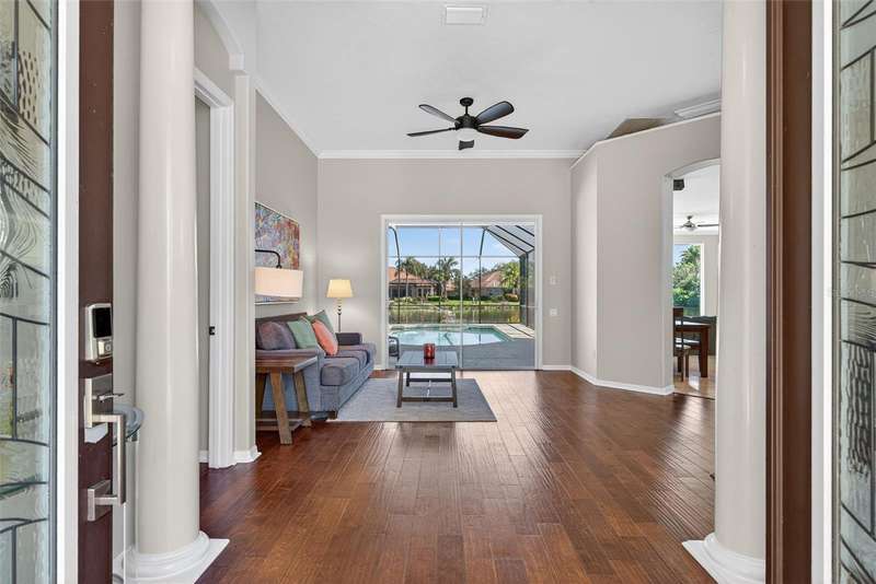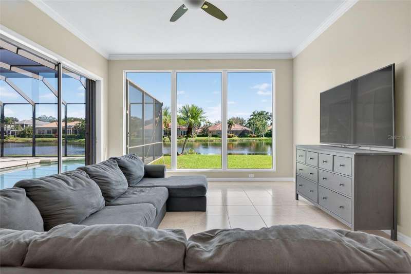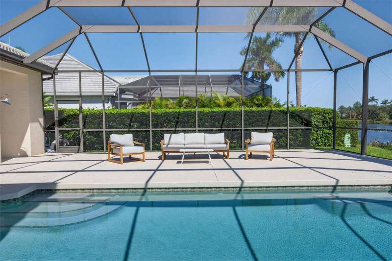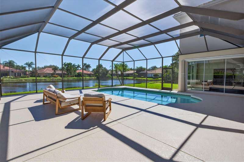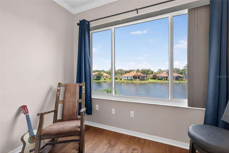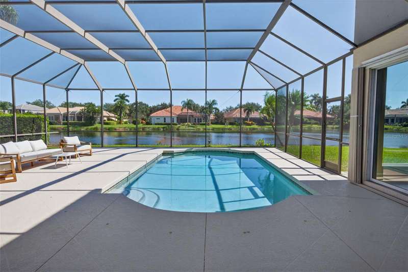 Enjoy peaceful premium lake views and over 3,500 sq. ft. of elegant living space, designed for both comfort and entertaining. This 4 bedroom, plus 2 office/flex rooms, 3 bath home offers a great floor plan for many uses. The main level includes the primary suite, private guest room, plus office while the second floor adds a spacious bonus/media room plus two additional bedrooms and an office/flex room. The home features hurricane-impact windows, wide-plank engineered hardwood flooring and lots of natural light. A spacious kitchen with an oversized island, granite counters, and gas range. The expansive pool area overlooks the shimmering lake, offering a serene backdrop from nearly every room. A 3-car garage, and spacious lot complete the package. Silver Oak is an exclusive sought-after enclave of luxury homes known for its lush landscaping and mature oaks. A gated community, and ideal Sarasota location minutes from world-class beaches, dining, shopping, and the Legacy Trail. Please See Video Walkthrough (Virtual Tour 1) for a comprehensive view of the home!