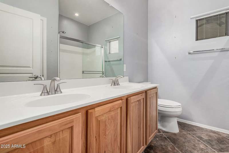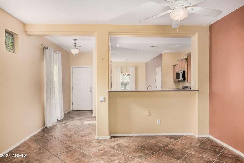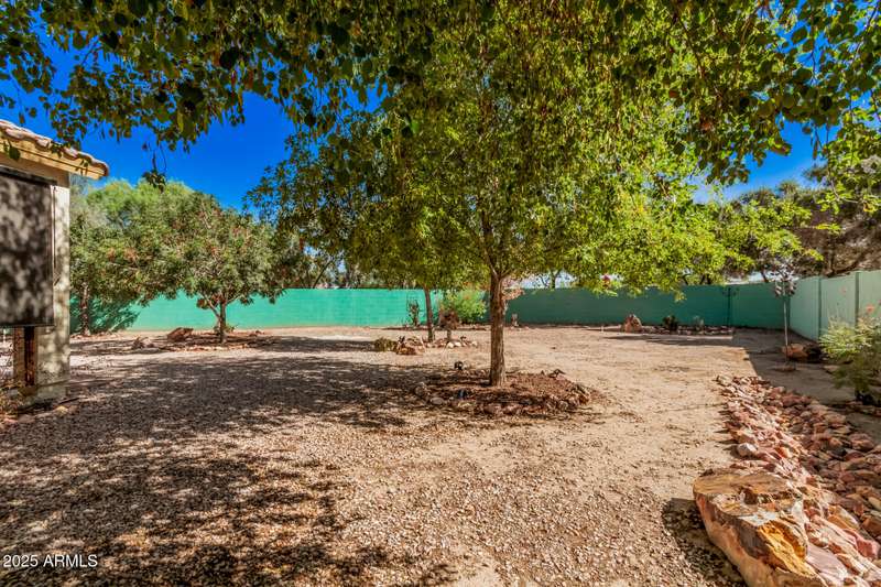 Home, sweet home! This charming 2-bedroom home in Surprise Farms welcomes you with a 2-car garage, tasteful stone accents, and mature trees for natural shade. The spacious living room features high ceilings, a warm palette, blinds, and durable tile flooring. Cook delicious meals in the eat-in kitchen, equipped with granite counters, ample wood cabinetry with crown moulding, recessed lighting, stainless steel appliances, a pantry, a center island, and a practical pass-through with a breakfast bar. The main bedroom has an ensuite with dual sinks and a walk-in closet. You'll also find a cozy den that provides a versatile space for an office or lounge. Spend tranquil evenings in the sizeable backyard, showcasing a covered patio and a couple of sheds for additional storage. Don't miss out!