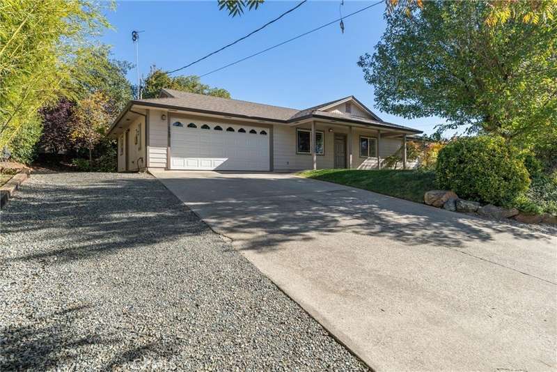 Welcome to this charming 3-bedroom, 2-bath home built in 2007, perfectly located within Oroville city limits. This beautifully maintained residence offers a modern-classic design with thoughtful upgrades throughout. The upgraded kitchen features modern blue cabinets, tile countertops, and a stunning backyard view from the sink window. A Café gas range, matching dishwasher, and microwave add both style and functionality, while the adjacent laundry room offers added convenience. Enjoy the spacious living and dining areas, highlighted by built-in display cabinets and large windows that fill the home with natural light. The guest bedrooms are generously sized with large closets, and the primary suite includes a walk-in closet and an generous private bathroom. Step outside to a peaceful backyard surrounded by mature landscaping that provides privacy and shade during warm summer months. The back deck is perfect for entertaining, with lush greenery and easy access through large sliding doors from the dining area. A two-car garage, extra parking space, and a permitted storage shed add plenty of storage space for extra toys or hobbies. With central heating and air, mature landscape and location, this home offers year-round comfort. Ideally situated near scenic walking paths along the river and just minutes from downtown Oroville, you’ll enjoy both natural beauty and everyday convenience right at your doorstep. This is truly a wonderful place to call home.