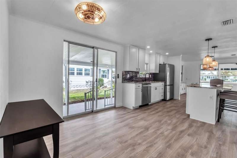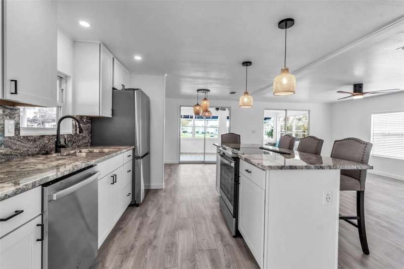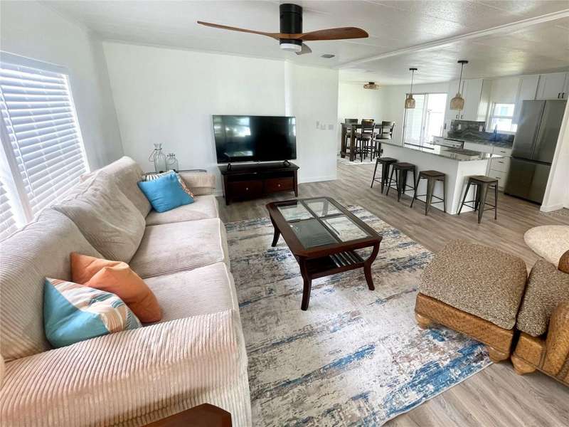Bring your boat! This is an absolute MUST-SEE HOME! This stunning, fully renovated residence comes with a new roof, a partial carport, and new front windows. The entire home features new 3/4-inch plywood subflooring installed over the existing 1/2-inch subfloor, brand-new laminate flooring, an upgraded electrical panel, and a new water heater.The second bathroom is revamped with a new tub, surround, toilet, vanity, mirror, and lighting. The kitchen is a showstopper, showcasing new cabinets, appliances, granite countertops, and a chic backsplash. The primary bathroom offers a modern double sink vanity, mirror, and stylish lighting.Every room is illuminated by new light fixtures and ceiling fans. The front landscaping is fresh, and the exterior, driveway, and laundry area have all been newly painted. The Alameda Isles community boasts a fantastic boat ramp with 59 boat slips available on a first-come, first-served basis, situated on a saltwater canal that connects to the Intracoastal Waterway. Enjoy unparalleled amenities, including a year-round heated swimming pool with sunshade, a therapeutic spa, a gym, a sauna, tennis/pickleball and shuffleboard courts, bocce courts, picnic facilities, golf putting green, and a practice area. Take advantage of the woodworking shop, complete with a tool room for residents. The clubhouse complex is impressive, featuring a large hall with a kitchen and stage, a craft room with a kiln, a billiards room, a lounge/card room, and a library. Free Wi-Fi is accessible throughout the clubhouse, and there is RV/boat storage available (separate lease required).Make sure to stop by the clubhouse to witness the manatees and dolphins playing in the canal!Note: The air-conditioned front lanai adds 300 square feet to the total square footage of 1,452. The actual county record square footage is 1,152. The owner will consider financing. Don't miss out on this incredible opportunity!