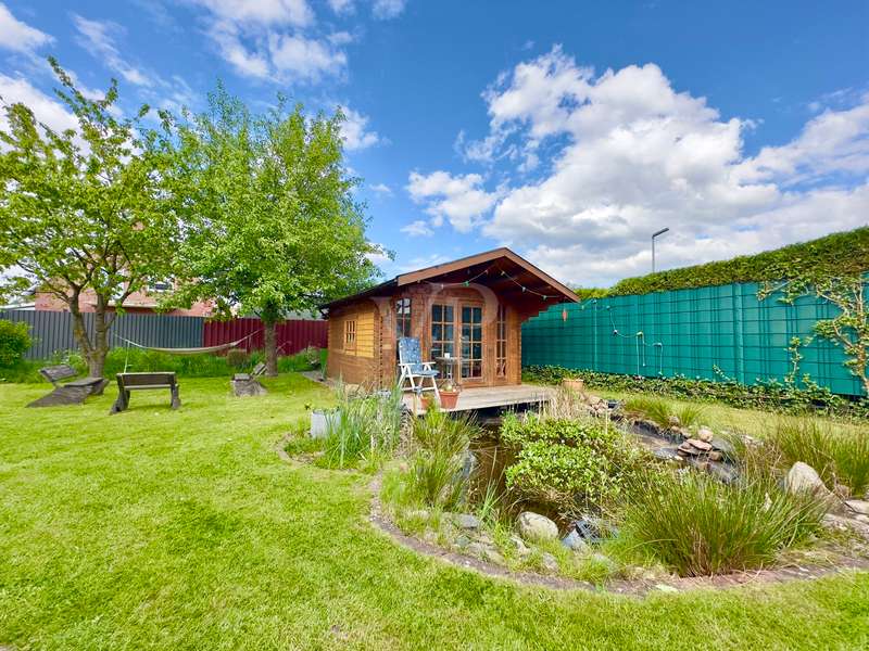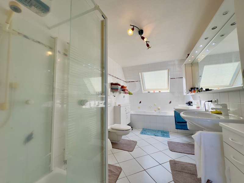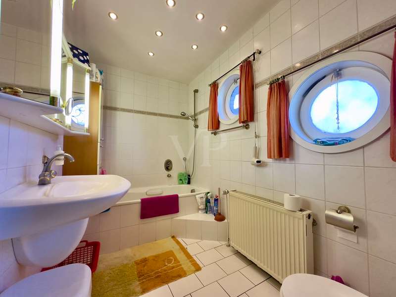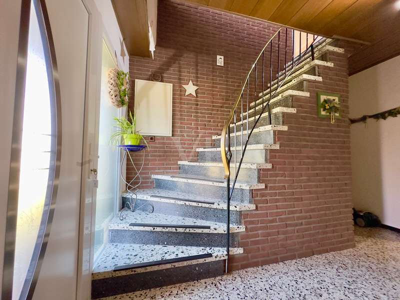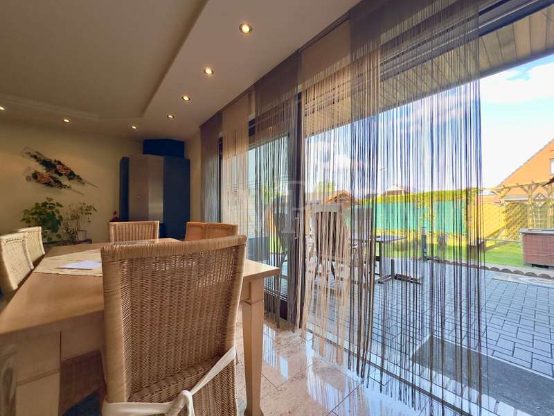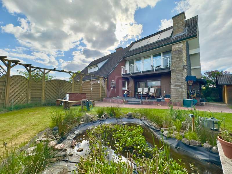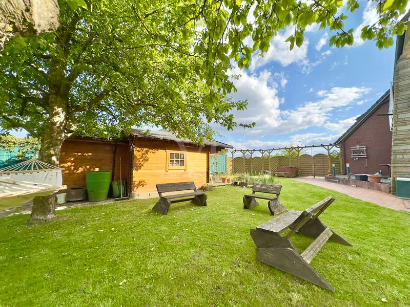 This well-kept detached house, built in 1970 and modernized through various structural measures, offers an attractive living space of approx. 181 m² and is situated on a generous plot of approx. 876 m². The living space is distributed over a total of eight rooms, including four potentially spacious bedrooms. Two daylight bathrooms ensure optimal use on both the first floor and the upper floor. The bathroom on the first floor is equipped with a bathtub, while the bathroom on the upper floor has both a shower and a bathtub. The extension in 1976 and the addition of a storey to the extension in 1996 created additional rooms that extend the living area and enable versatile use. The conversion of the loft into a wellness area on the upper floor is a further highlight and offers relaxing moments with an integrated sauna. On the first floor, you will find a dining room equipped with a traditional tiled stove, which provides cozy warmth in the cooler months. Another stove, a water-bearing model, complements the living room, supports the central heating and creates a pleasant living atmosphere. The combination of central heating and underfloor heating ensures a comfortable indoor climate throughout the house. The house has been continuously modernized over the years, most recently in 2019 with the installation of new windows, which has further optimized energy efficiency. The features are complemented by a solar thermal system, which makes a sustainable contribution to the home's hot water supply. The outdoor area not only offers a spacious garden for numerous design options, but also two garden sheds. The solid garden shed, equipped with a stable concrete foundation and electrical connections, is ideal for use as a hobby room or workshop. The other garden shed with pond offers additional scope for design and a calming view. A solid garage completes this offer. It offers enough space for a vehicle and storage space for bicycles or garden tools. The partial cellar offers additional storage space. Thanks to ongoing maintenance and regular modernization, this detached house is in an attractive condition and offers plenty of space for a family. The quiet yet centrally located residential area offers excellent connections to local amenities and infrastructure, making everyday life easier. This detached house combines classic architectural charm with modern elements and offers its residents a comfortable living experience in an inviting atmosphere. Arrange a viewing appointment immediately to get a complete picture of this property and get to know the premises on site. The energy certificate is currently being processed.