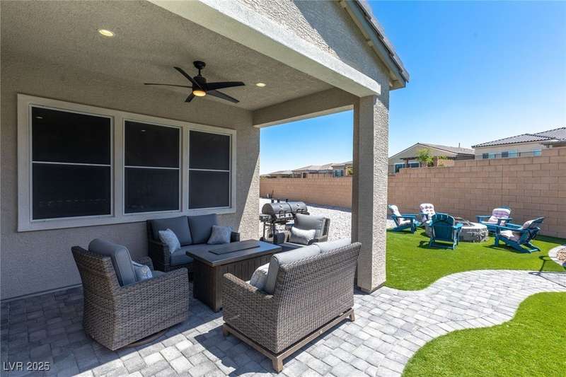 *OVER 1/4 ACRE LOT* Nearly double the size of any other available lots in the neighborhood * Welcome to this beautifully upgraded single-story gem, ideally situated on a large cul-de-sac lot with an impressive paved driveway and a spacious 3-car garage. Step inside to discover an expansive open floor plan featuring soaring 10’ and 12’ ceilings. The heart of the home is the great room, perfectly positioned adjacent to the gourmet kitchen. The kitchen boasts SS appliances, quartz countertops, upgraded cabinetry, double ovens, a 5-burner cooktop, a walk-in pantry, and an oversized island that’s perfect for entertaining. Enjoy versatile living spaces including a den with direct outdoor access. Formal dining great for entertaining. Step outside to your private backyard oasis, complete w/ a covered patio and ceiling fan ideal for hosting unforgettable summer events. Located in an outstanding community offering walking paths, parks, a refreshing pool, fitness center, pet park, and clubhouse.