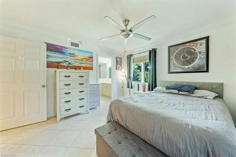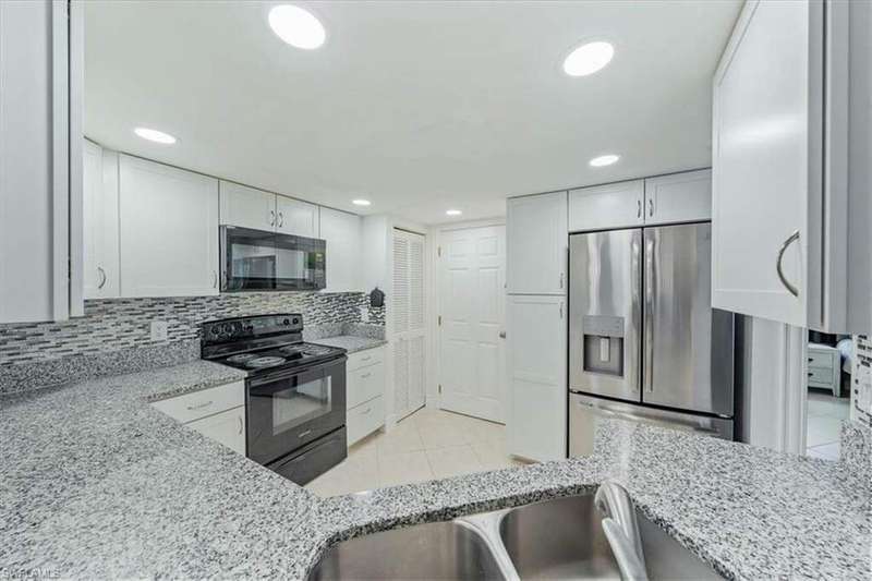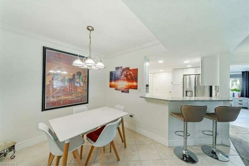 LOCATION, LOCATION! Close to FGCU, Coconut Point Mall, Miromar Outlets & Airport! This beautifully remodeled 2-bedroom, 2-bathroom END UNIT, located on the first floor, is sure to impress from the moment you arrive. The open-concept kitchen features a breakfast bar, granite countertops, and newer appliances. The spacious, flowing floor plan, with tile flooring throughout, is perfect for entertaining. Special touches include crown molding, remodeled walk-in showers with elegant tile walls and built-in benches (with handicap bars), new commodes, and granite vanities with sinks. The home also boasts new ceiling fans throughout, as well as newly replaced lanai screens. Storage is abundant with walk-in closets in both bedrooms, and a newer washer and dryer are included. Additionally, the electrical circuit breaker box was updated in 2021, and the water heater is approximately 4 years old. The A/C compressor is also about 3 years old. To enhance comfort, the seller has installed window and slider tinting to reduce sun glare. Relax and unwind on the spacious lanai with your favorite beverage. Fountain Lakes offers a wealth of amenities, including a 9-hole golf course, pickleball, tennis, a fitness center, a playground, a billiards room, a picnic area with grills, and a swimming pool. Plus, there's an additional pool at The Greens. What more could you ask for? Two pets are allowed with approval.