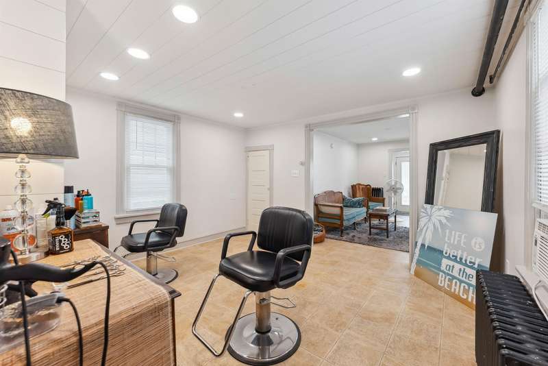 Amazing opportunity to Own Your Own Business and Have an additional residential 1 bedroom for your occupancy or for additional rental income. The First Floor is currently owner occupied and is an established hair salon that has been well established for many years. With 7 Car parking and an incredible amount of visibilty, this location is truly a blessing for those looking to make an impression and draw traffic to your business. Just Feet to Wawa and Dairy Queen, you are certain to have millions of eyes on your establish. This Property was once a single Family with 3 Bedrooms and 1.5 baths and could easily be re-opened up to expose the internal Stairwell leading upstairs. The area where the Salon's reception area and Hair dryers are was once a wrap around porch. The Waiting room was once the Living room, The Cutting area was the Dining room and the Rear area the Kitchen. Upstairs was 3 bedrooms and 1 bath. The commercial 1/2 bath has plenty of room to upgrade to a Full 2nd Bathroom. This is an extremely Rare chance for a mixed use property in North Wildwood with parking. Perfect for a Contractor looking to establish their business at the Shore, Keep as a salon, Real Estate office or much more. Please note that a change of use may require a variance by the city of N Wildwood