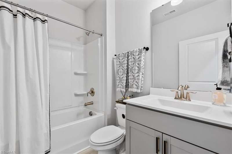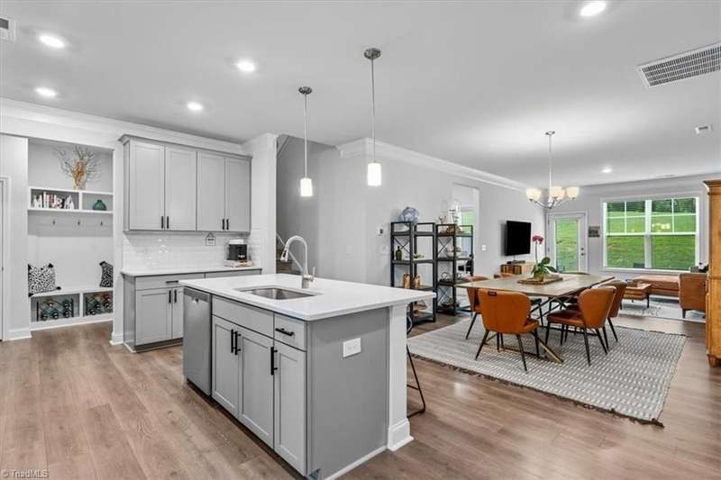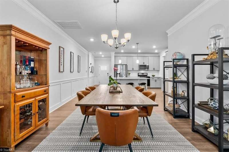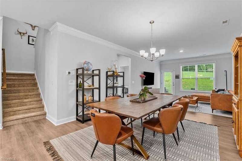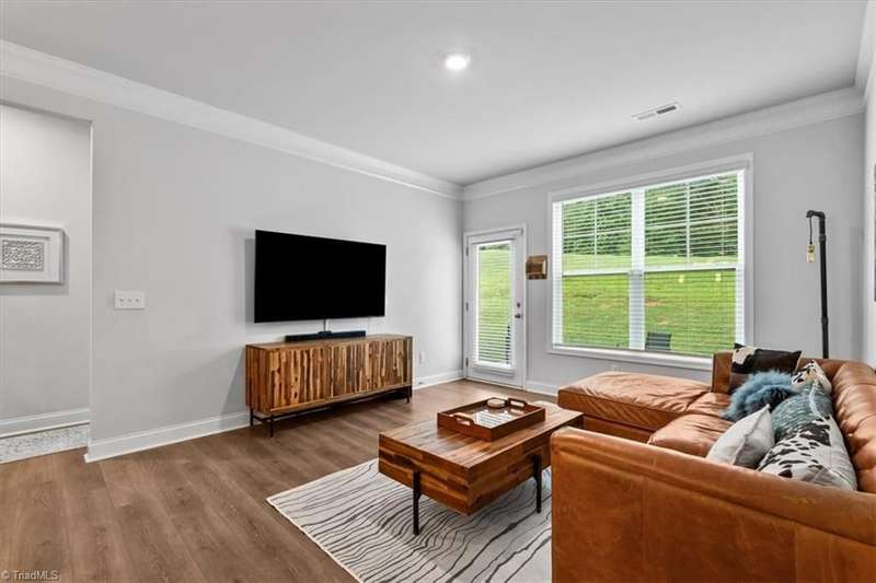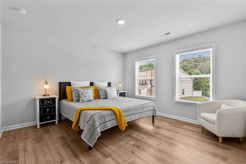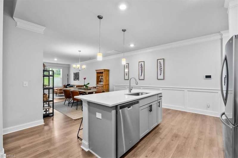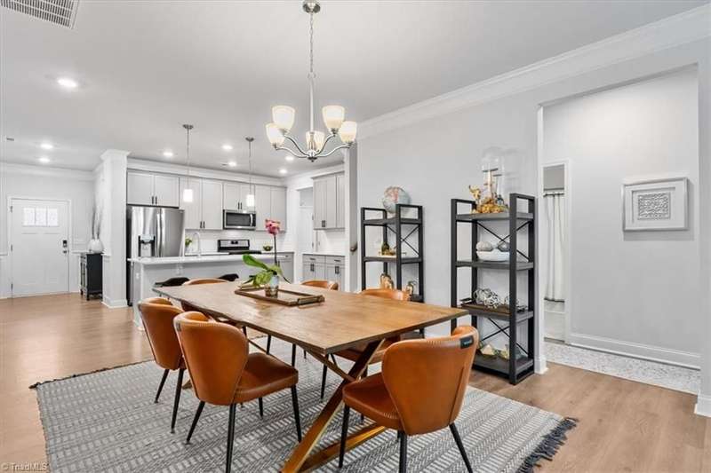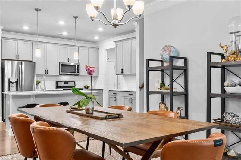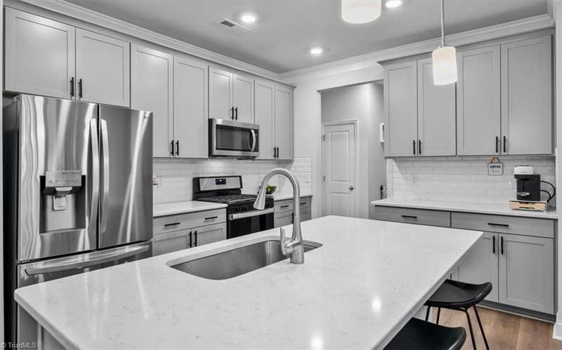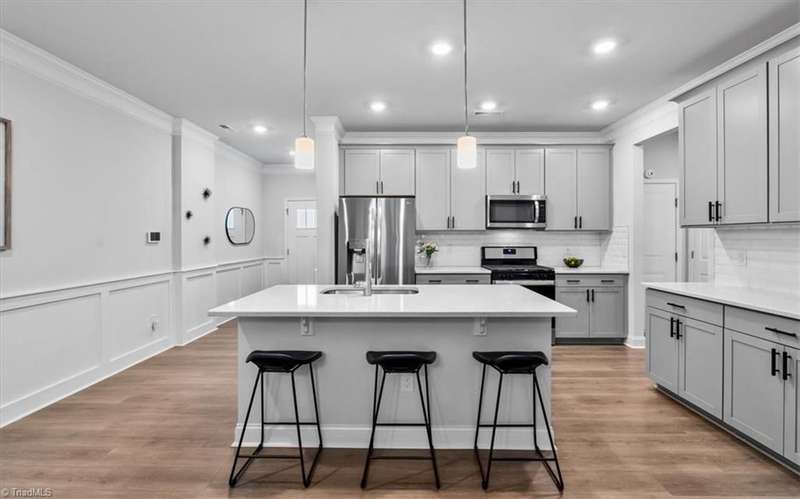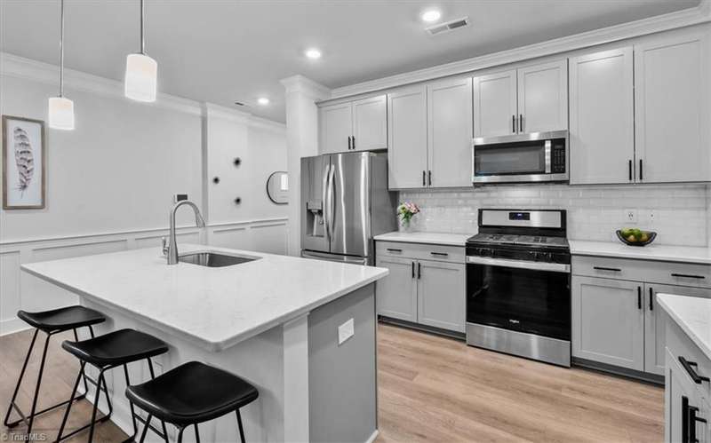 Wow! This amazing Townhome in Henson Park is move in ready-with cosmetic updates you do not find in newer builds. Built in June 2021 "The Linville Floorplan". Once you enter you will notice the 9' ceilings and bright finishes, crown molding, Mohawk engineered flooring. Fabulous Kitchen Island w/seating, granite counter tops, gas stove. LG fridge, built in microwave. Entering from garage there is a drop zone and generous walk n pantry. Main level has bedroom, full bath, easy open plan! Upper level, large family room, massive Primary suite w/huge ensuite. 4th bedroom, full bath, generous size laundry room. Tons of storage! This home is unique-no neighbors front or back! Close to downtown, parks, shopping, resturants and more! Great opportunity to own in one of Greensboro's prime communities.