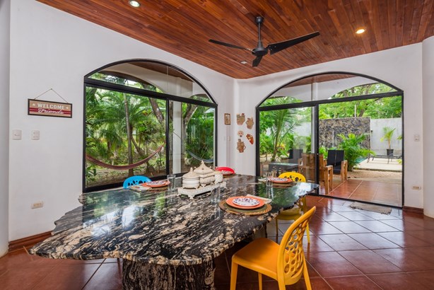 Casa Alice: Welcome to your tropical paradise in Marbella! Casa Alice is a stunning two-story, 5382 sq ft house that is the epitome of luxury and comfort, offering a serene and remote retreat surrounded by breathtaking natural beauty. Located in close proximity to great surfing spots, this property is a haven for water enthusiasts and beach lovers.As you approach the house, you'll be captivated by the tropical landscaping and the striking volcanic rock feature walls that adorn the exterior. A charming fountain greets you at the front entrance, setting the tone for the tranquility and elegance that awaits inside. The interior of the house is bathed in natural light, thanks to the abundance of windows throughout. With teak ceilings and arches adorning the home and its windows, you'll be surrounded by architectural beauty at every turn. The hand-carved doors add a touch of artistry and craftsmanship to the overall ambiance.The master bedroom is a true sanctuary, complete with a jacuzzi tub for indulgent relaxation. Step outside onto the huge covered terrace directly off the master bedroom, where you'll find an additional kitchen. This private oasis is perfect for enjoying the warm Costa Rican days and evenings, offering a space to entertain or unwind while taking in the panoramic views of the lush surroundings.With four bedrooms and five bathrooms, this spacious home provides ample room for you and your guests. One of the guest bedrooms is thoughtfully designed with five single beds, perfect for accommodating larger groups. A second guest bedroom features a queen bed and a bunk bed set, offering flexibility and convenience for families or friends traveling together.The main kitchen, located downstairs, boasts stainless steel appliances, wood cabinetry, and elegant granite countertops. It is a culinary enthusiast's dream, providing both functionality and style for preparing and enjoying meals.Outside on the terrace, swings await you, offering a playful touch and a delightful spot to enjoy the fresh air. Imagine yourself unwinding in the hot tub, surrounded by the sounds of nature and the cool tropical breeze.This property is not only a dream home but also a fantastic opportunity for rentals. Casa Alice has been a wonderful vacation income property for the current owner’s family and has a great reputation and reviews for more than 8 years. The combination of its prime location, spacious layout, and captivating features make it an ideal choice for vacationers seeking an unforgettable escape. Don't miss the chance to own this exceptional piece of paradise. Come and experience the beauty and serenity of Marbella in this remarkable two-story house.